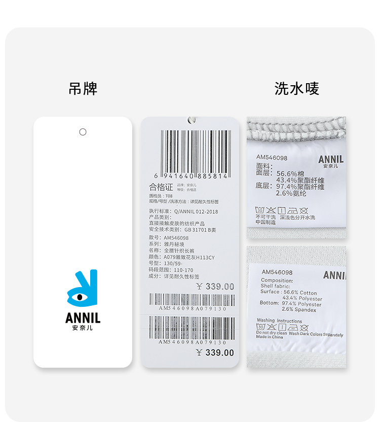 【实体店同款】男女童全腰针织长裤冬季新款安奈儿童装AM546098