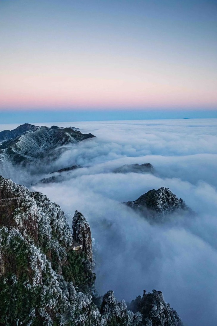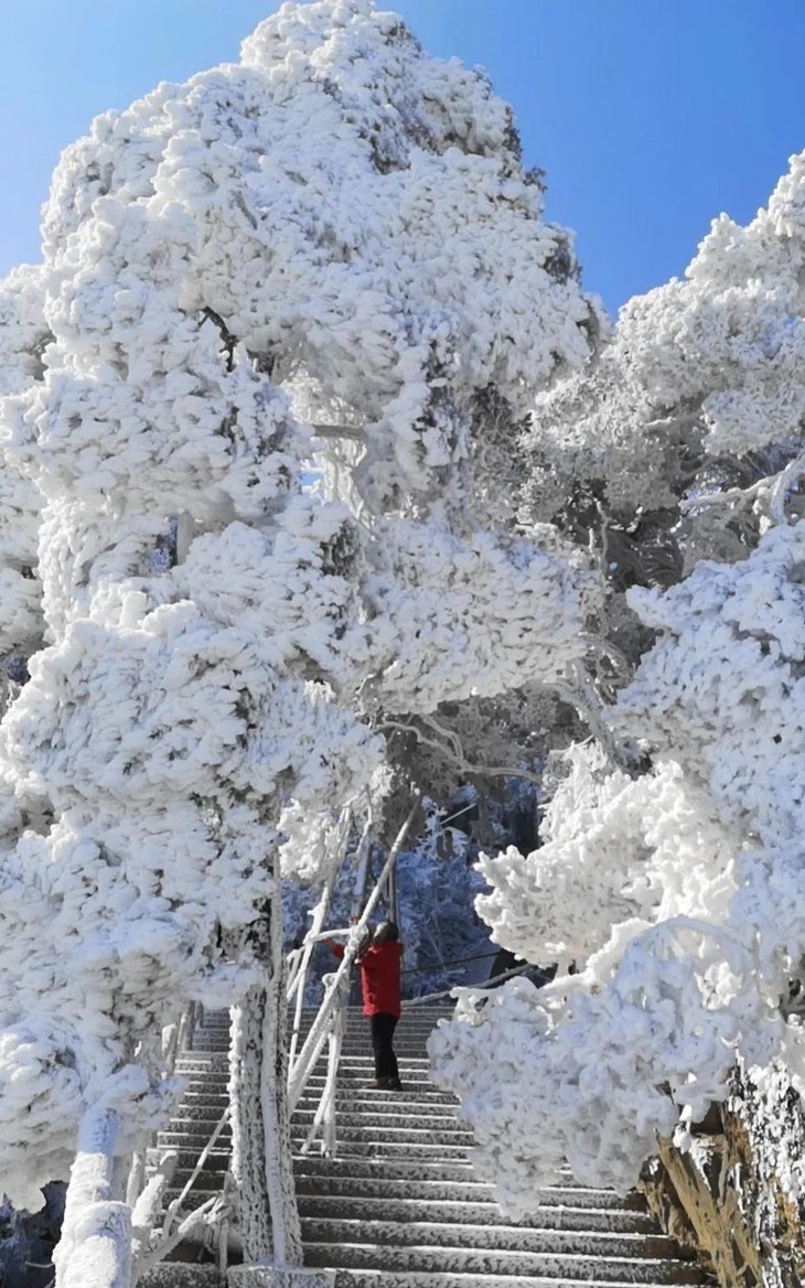 被雾凇装扮后的莽山五指峰配得上所有美好词汇