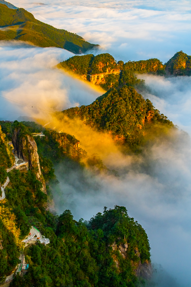 13:00 体验垂直观光电梯(电梯不含在大门票里面,建议乘坐,自理费用:单程40元/人),沿着悬空栈道一路经过金鞭大峡谷-东天门-七星崖-大天台,大天台号称“中南第一险”,运气好可以看到壮观的云海、雾凇奇观;