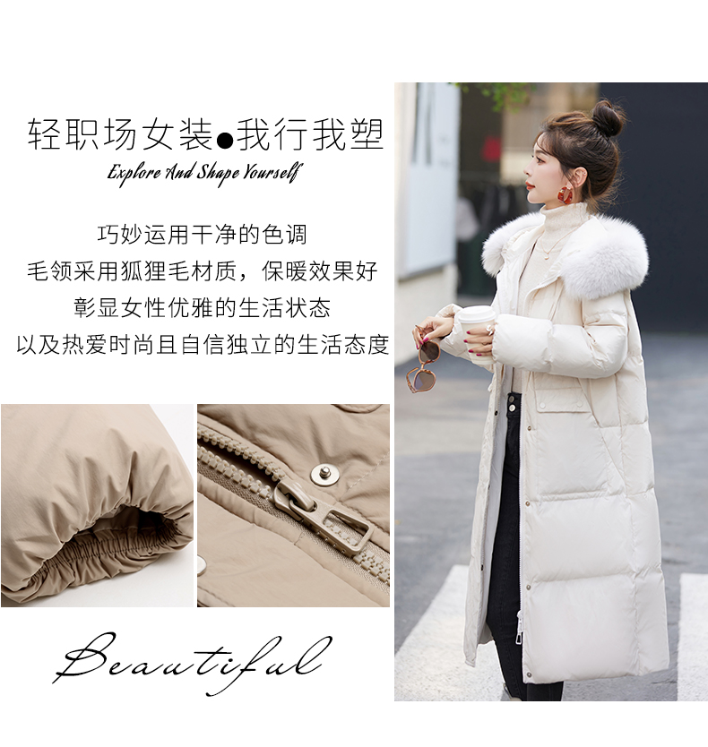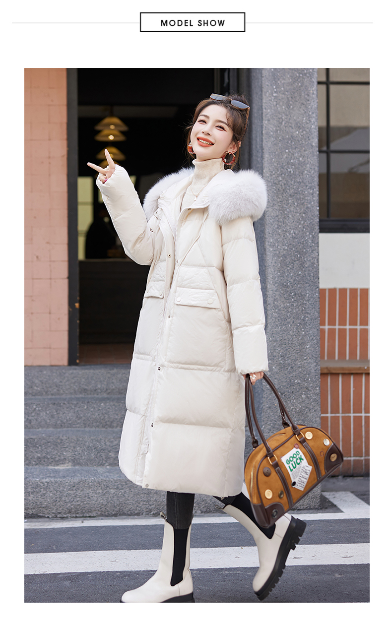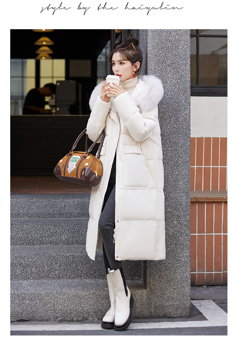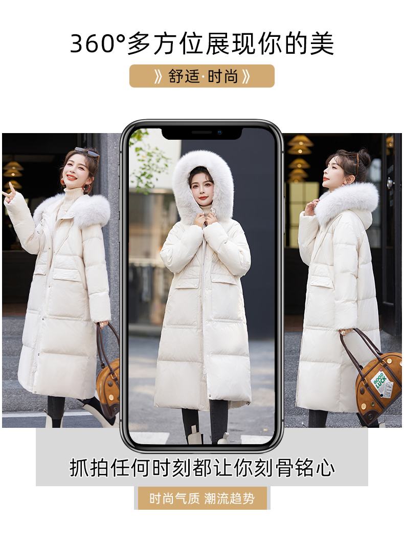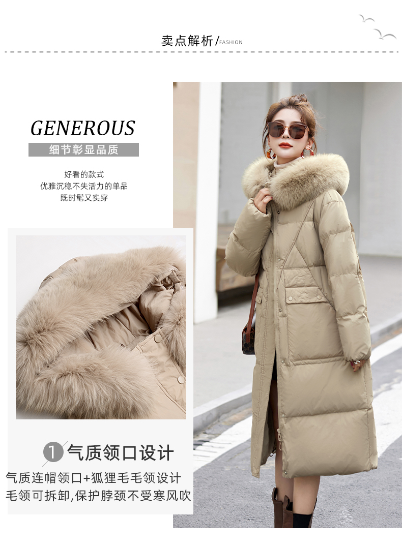 冬季新款,真毛领时尚宽松休闲白鸭绒狐狸毛领羽绒服外套HRYZ9035