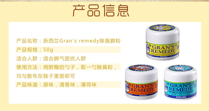 老奶奶Grans remedy臭脚粉香味50g【香港直邮】