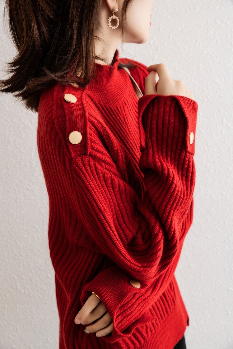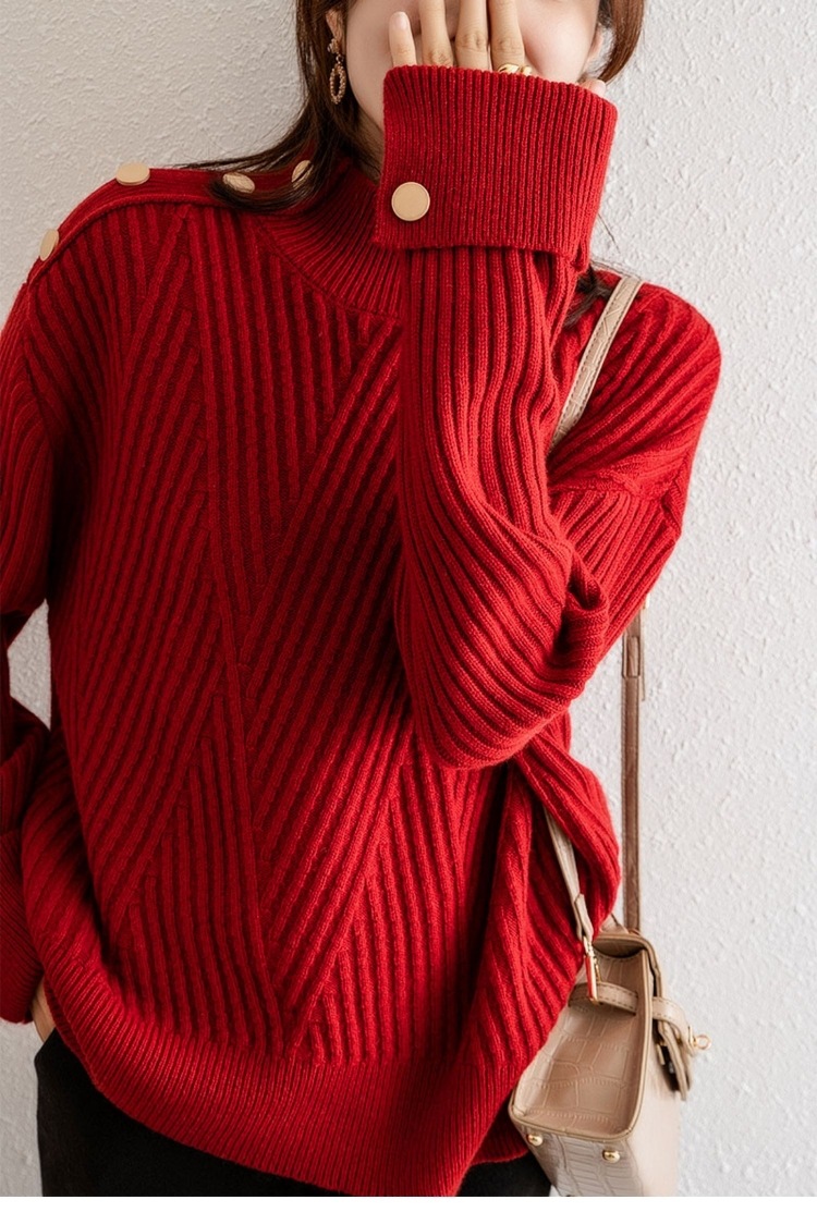 雀说 半高领新年红色毛衣女秋冬大码宽松气质百搭针织衫3ZF-0984