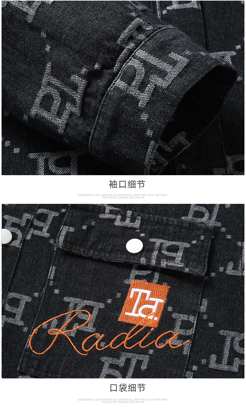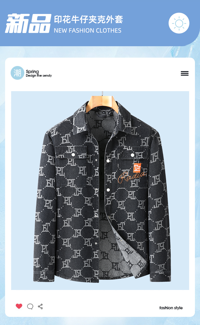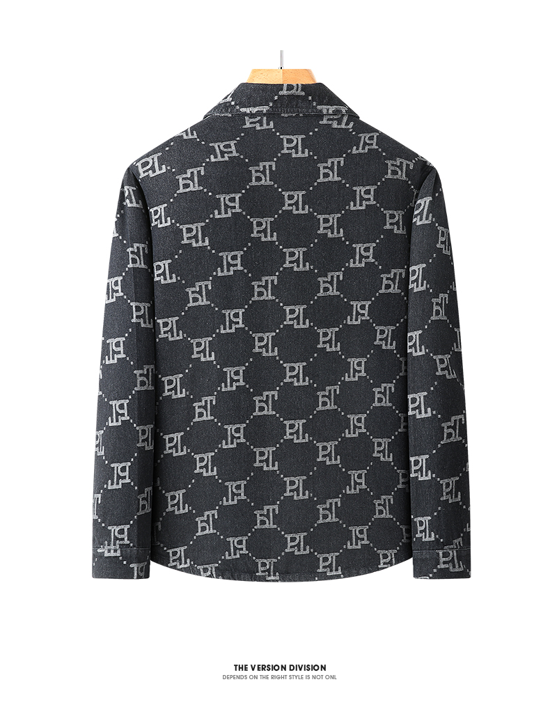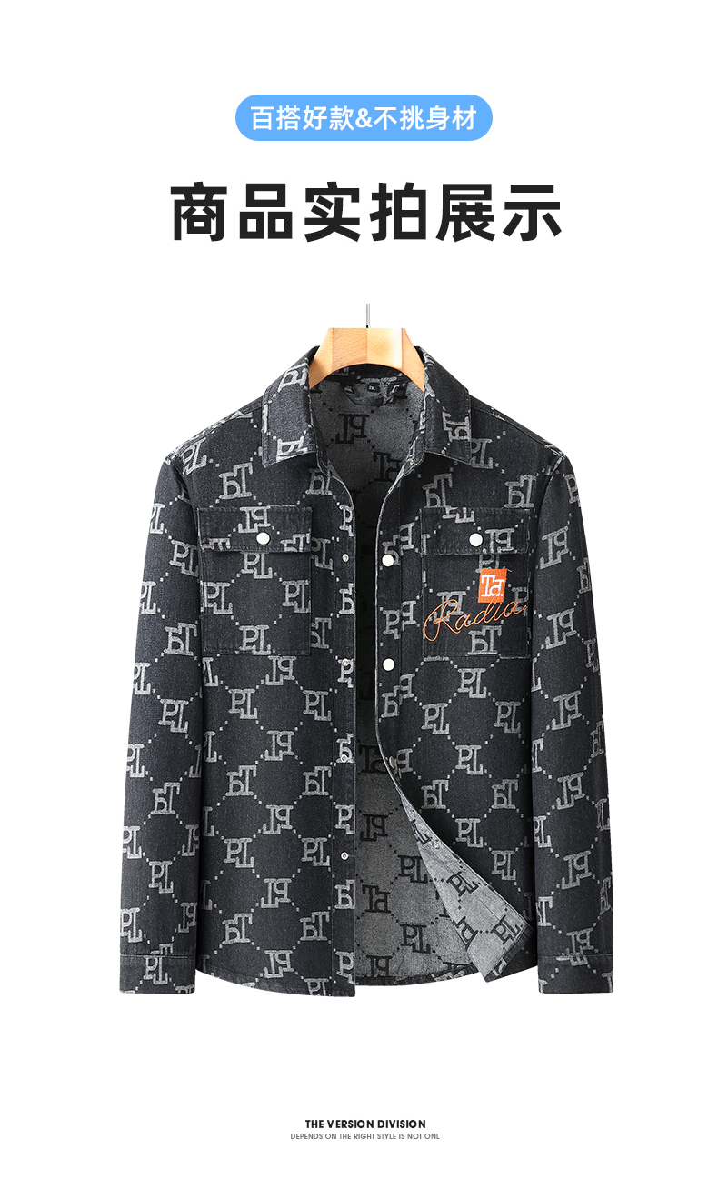 一口价【新款DX】大依优型大码翻领印花牛仔夹克外套休闲大码男装潮款加肥加大休闲