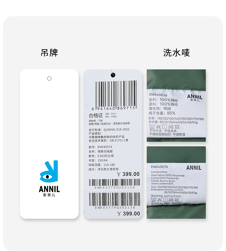 男女童短款羽绒服冬季新款安奈儿童装EM545579