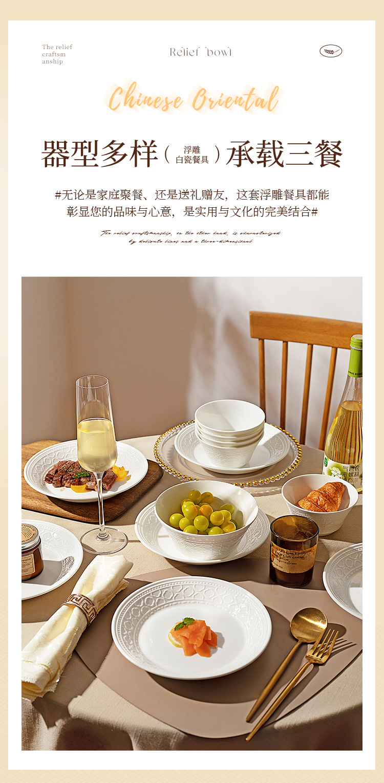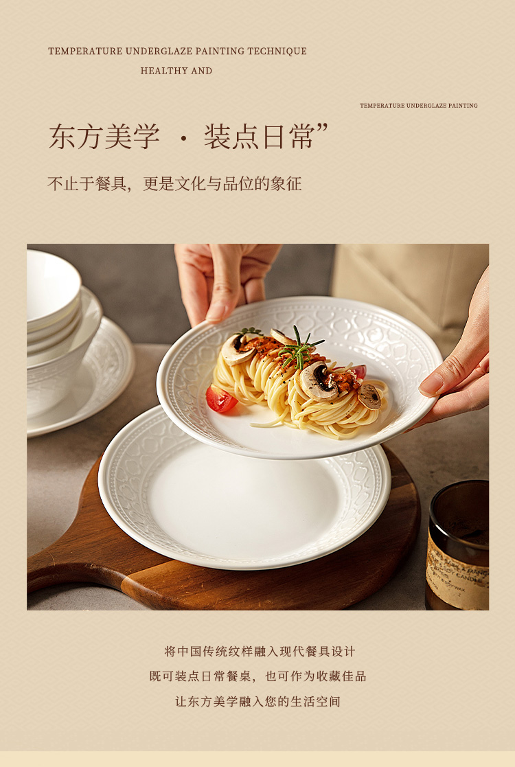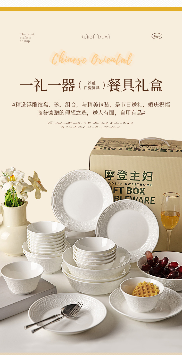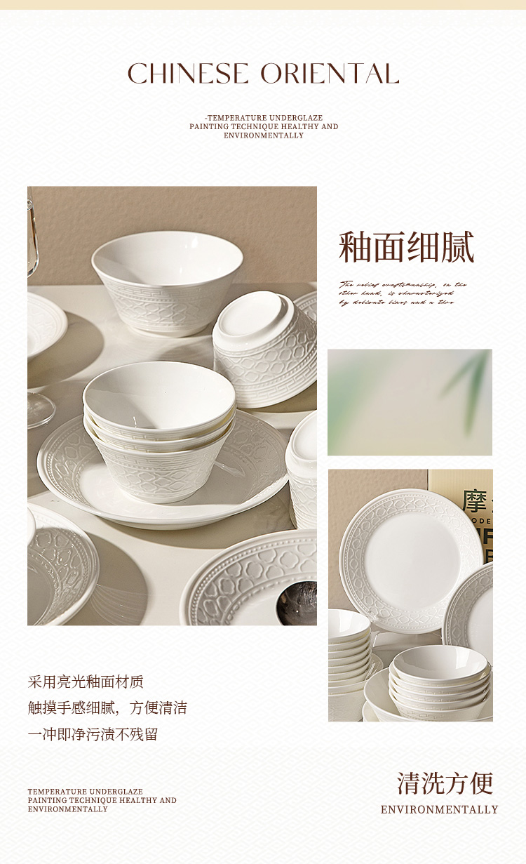 摩登主妇白色骨瓷碗具餐具套装家用2025新款碗盘碟筷乔迁新居礼物