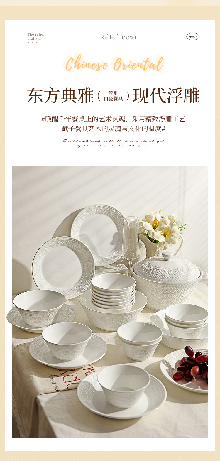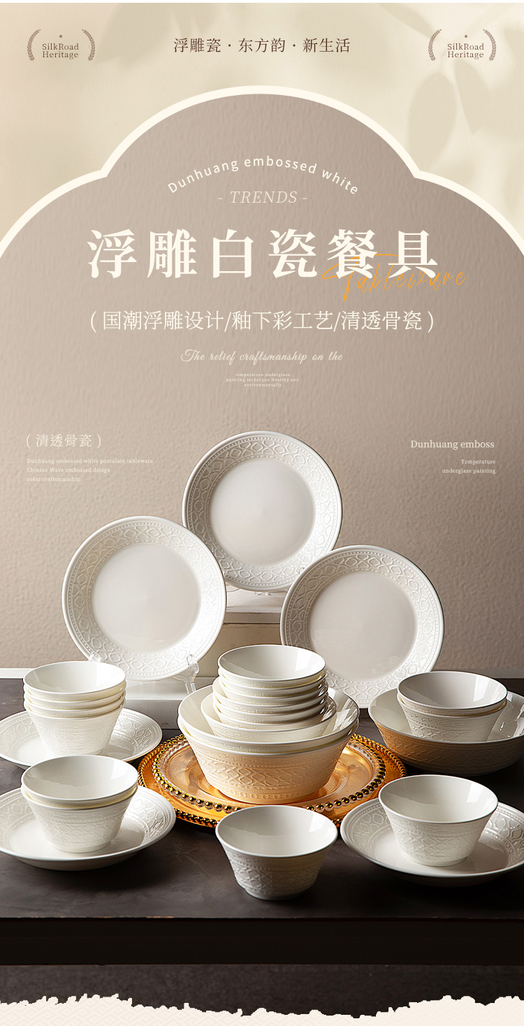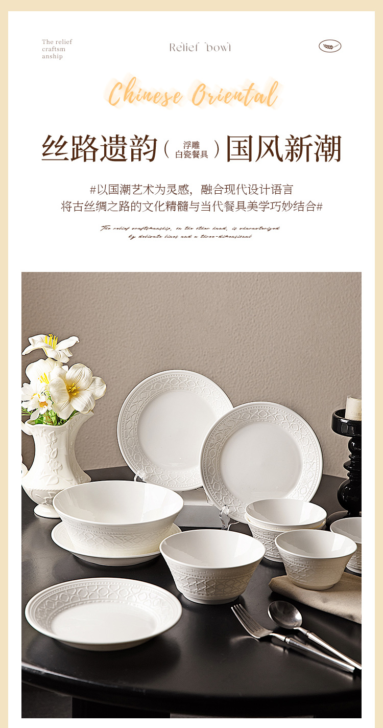 摩登主妇白色骨瓷碗具餐具套装家用2025新款碗盘碟筷乔迁新居礼物