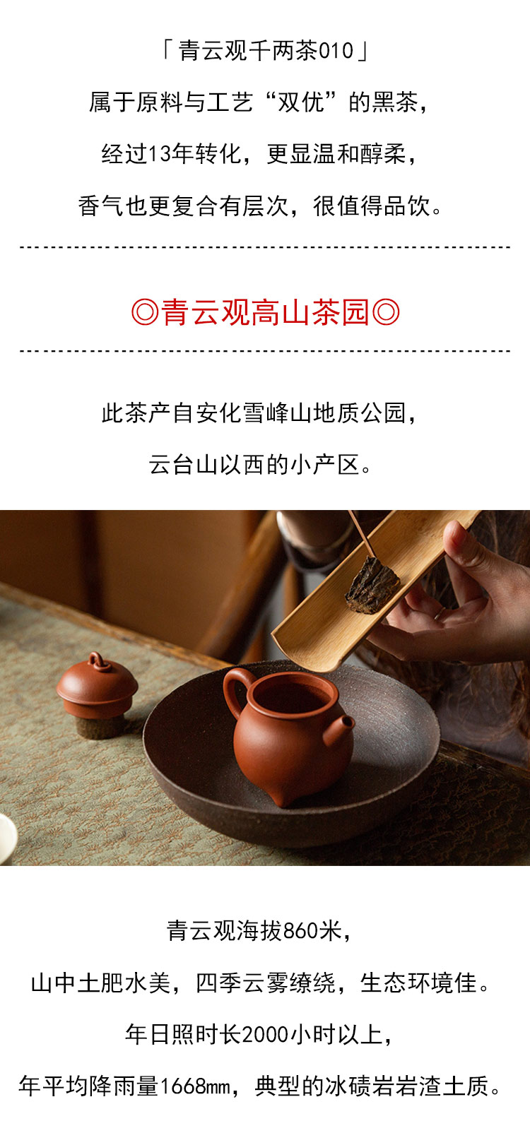 茶香记 青云观千两茶010 安化黑茶 纯料老千两 传统工艺 香气丰富 温和醇柔