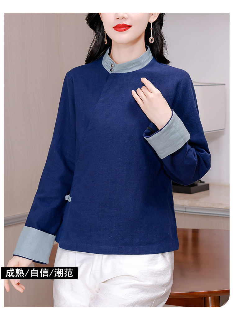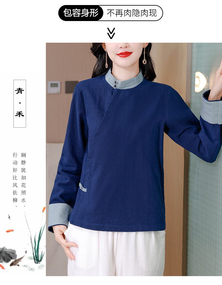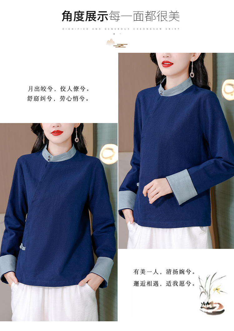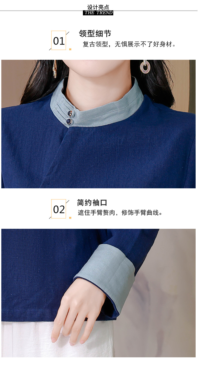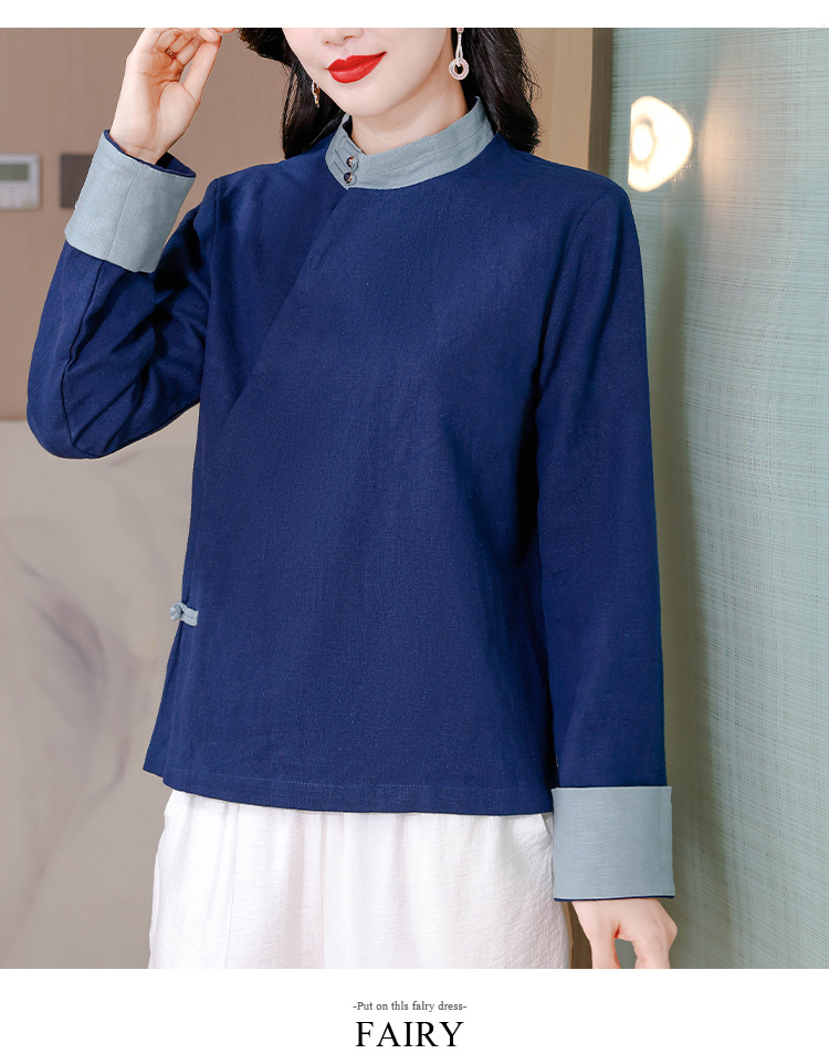 KQL A83N3177纯色棉麻唐装新中式上衣