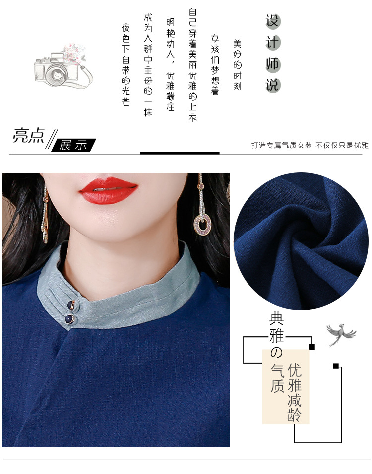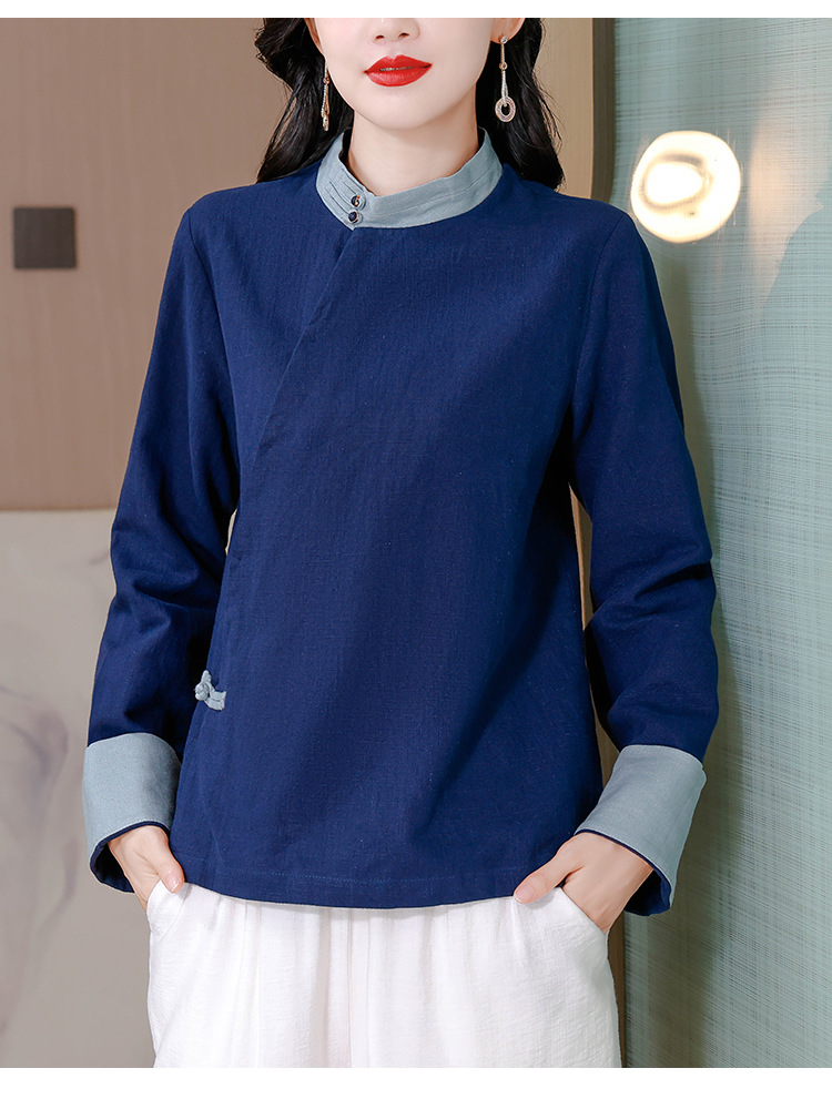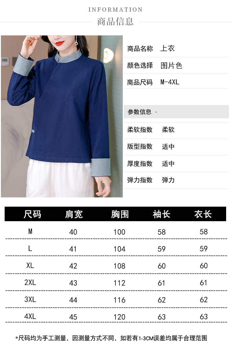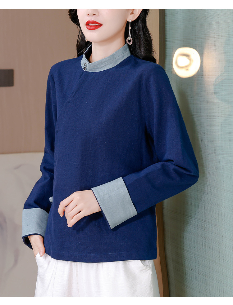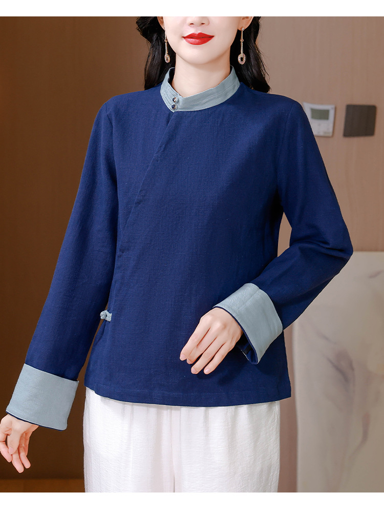 KQL A83N3177纯色棉麻唐装新中式上衣