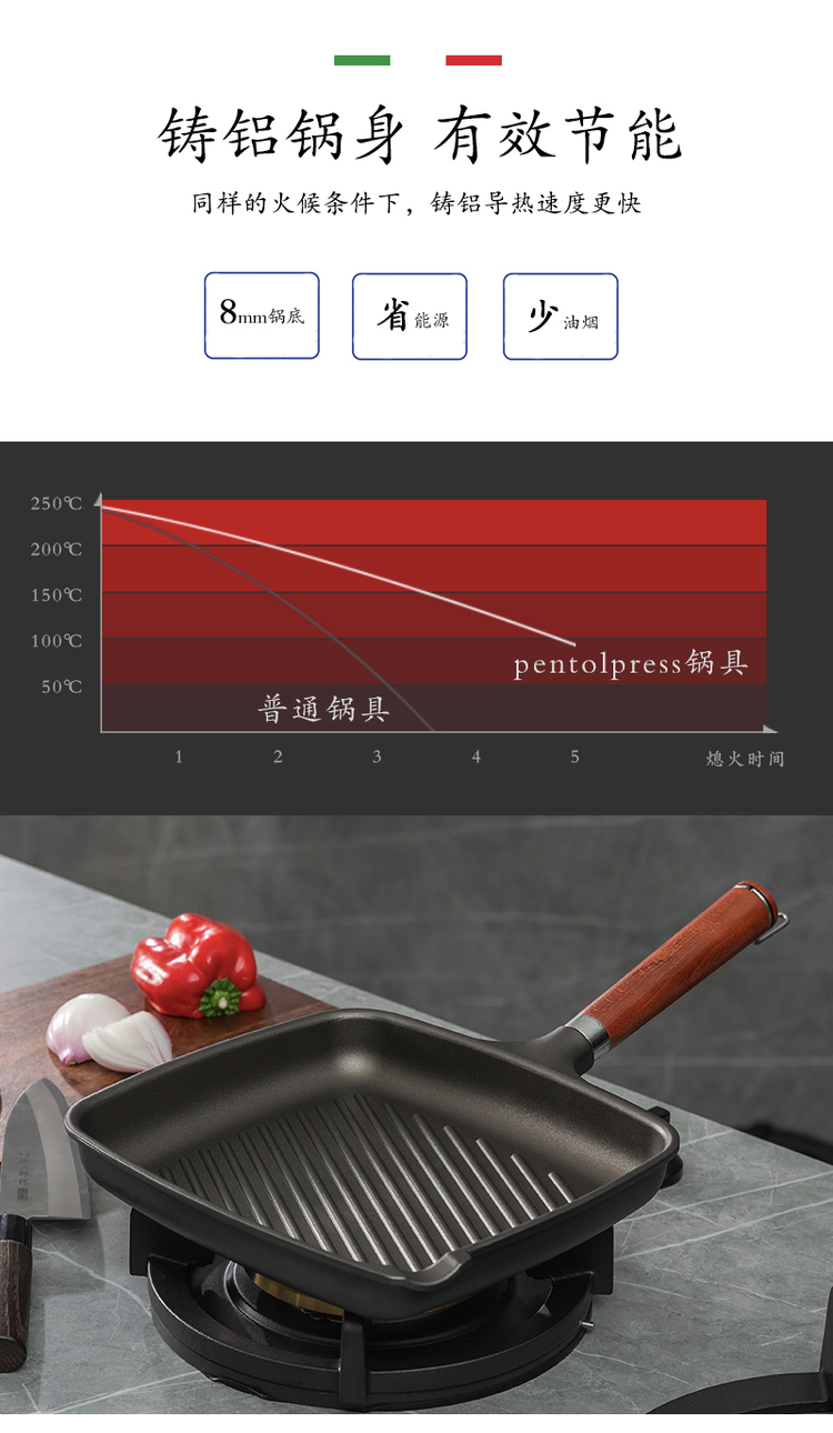 意大利原产PENTOLPRESS朱利安系列牛排煎锅(燃气款)