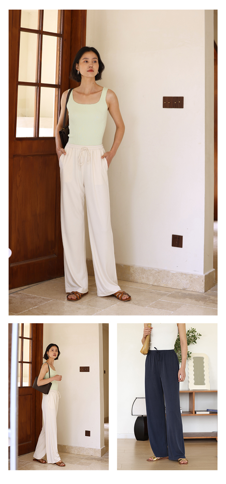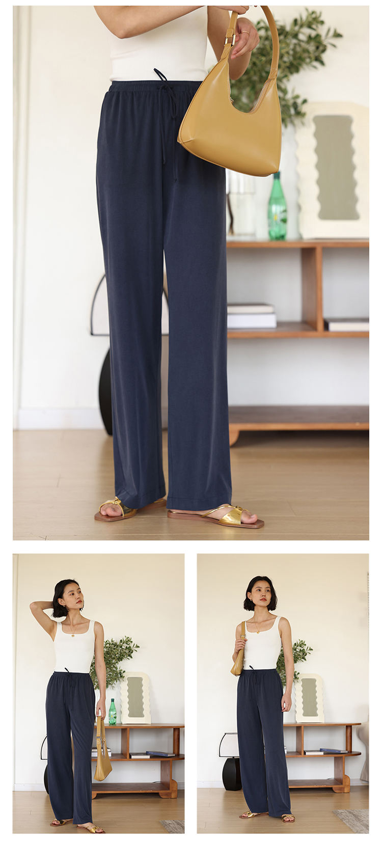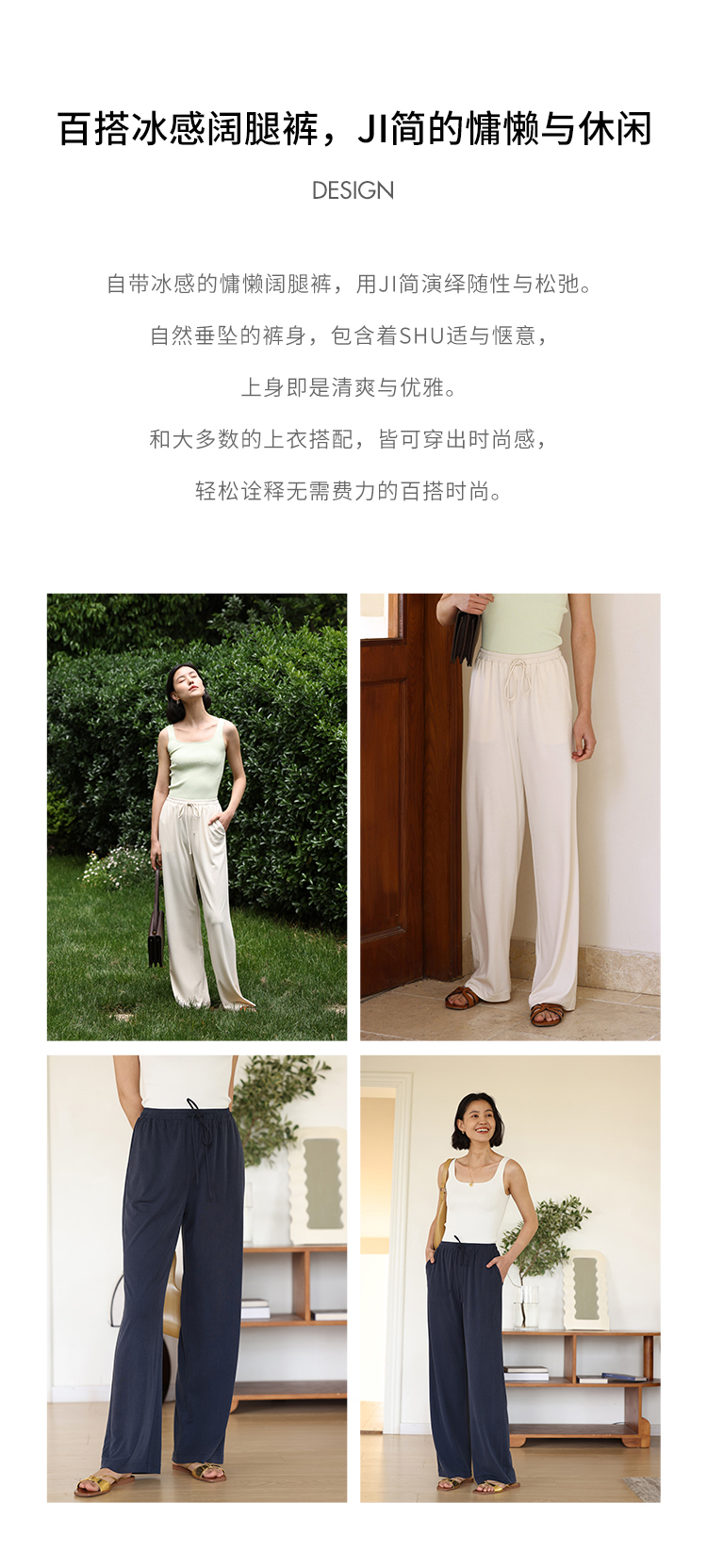 HeyDress冰丝阔腿裤女夏季高腰宽松显瘦针织直筒裤休闲百搭裤子