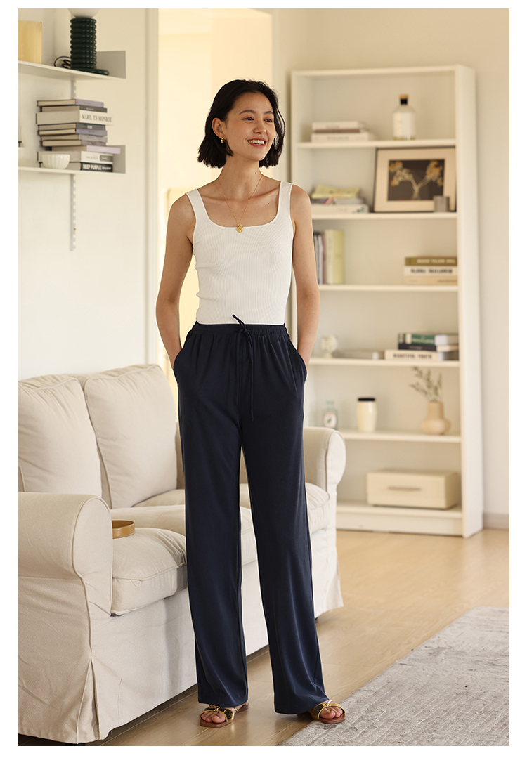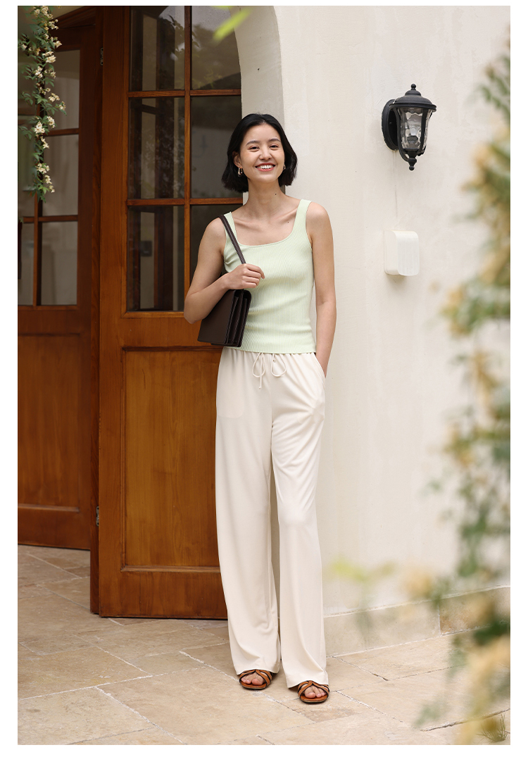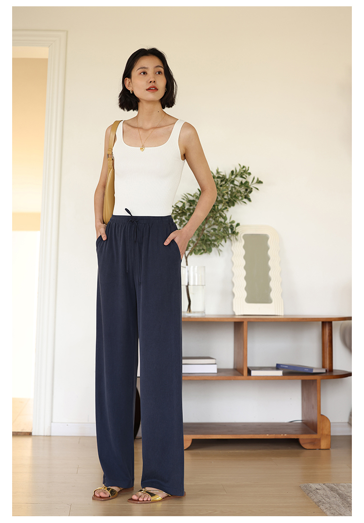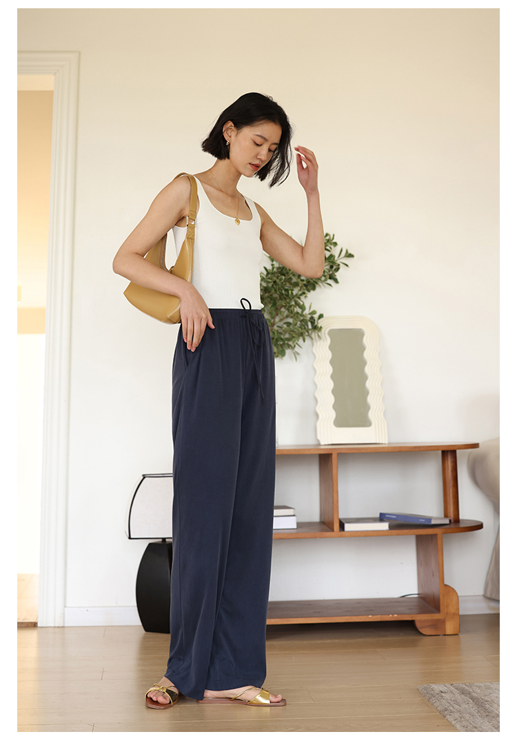 HeyDress冰丝阔腿裤女夏季高腰宽松显瘦针织直筒裤休闲百搭裤子