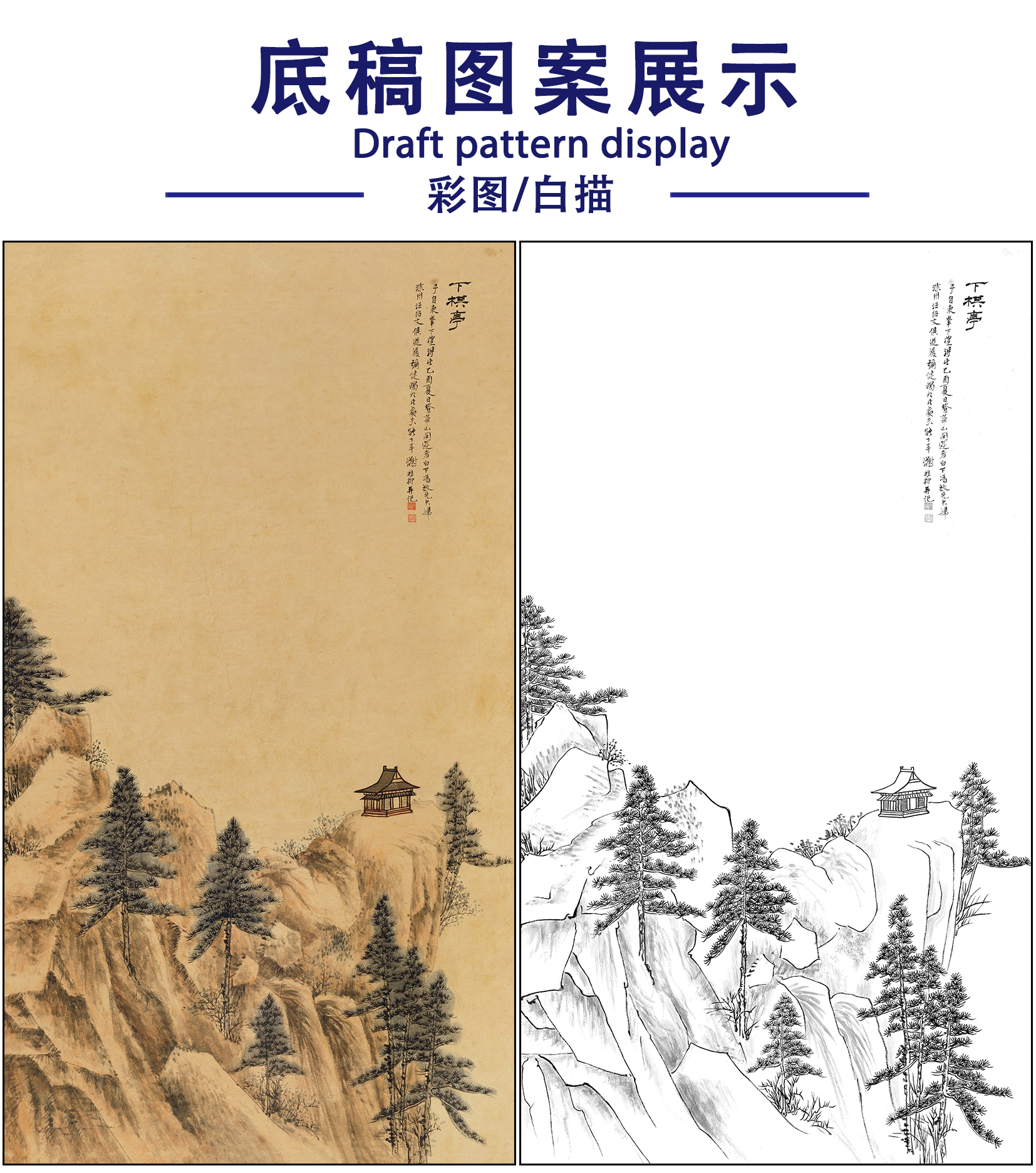 谢稚柳山水工笔画白描底稿《下棋亭》临摹勾线高清打印稿XZ43