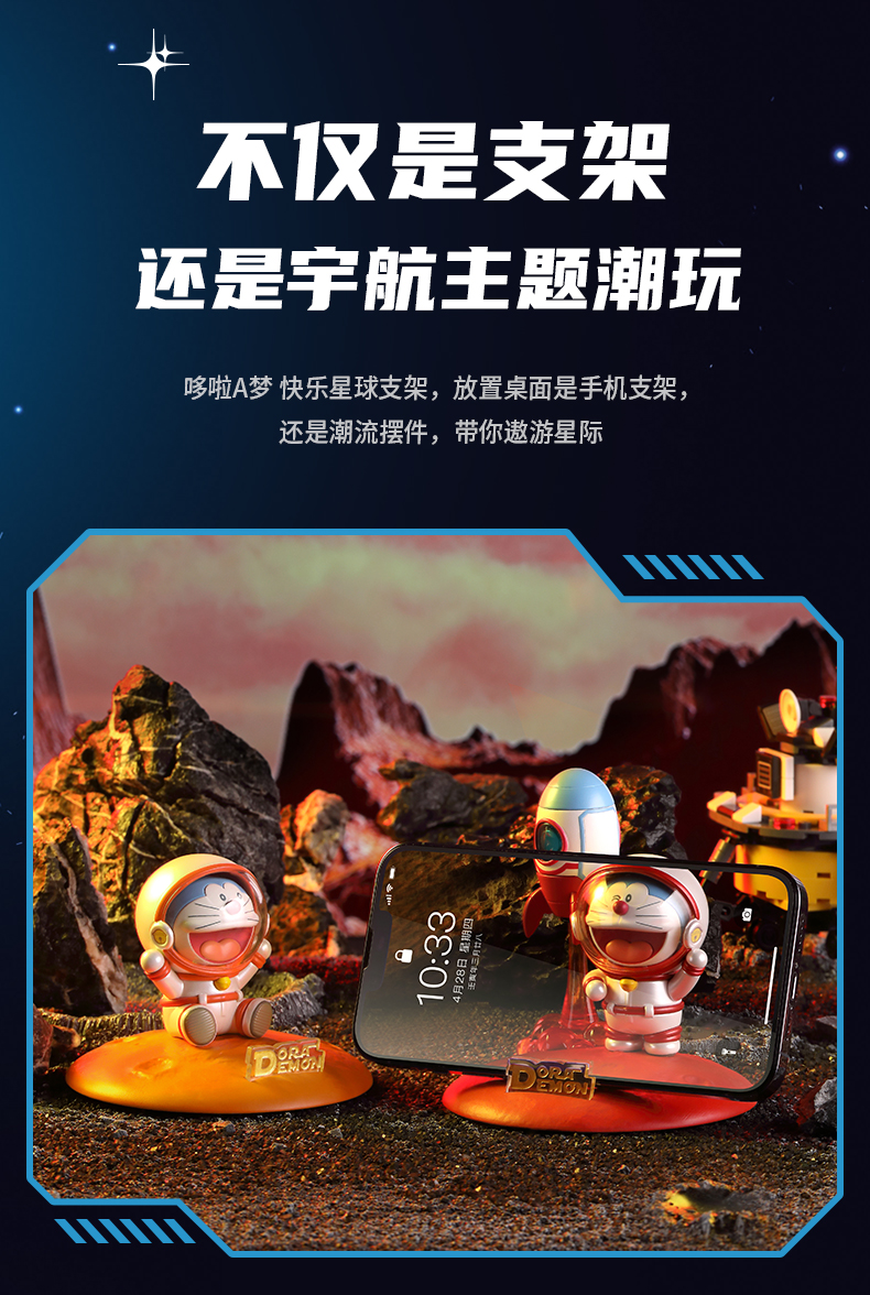 哆啦A梦快乐星球潮玩支架 Rock正版授权 宇航员手办生日礼物创意摆件