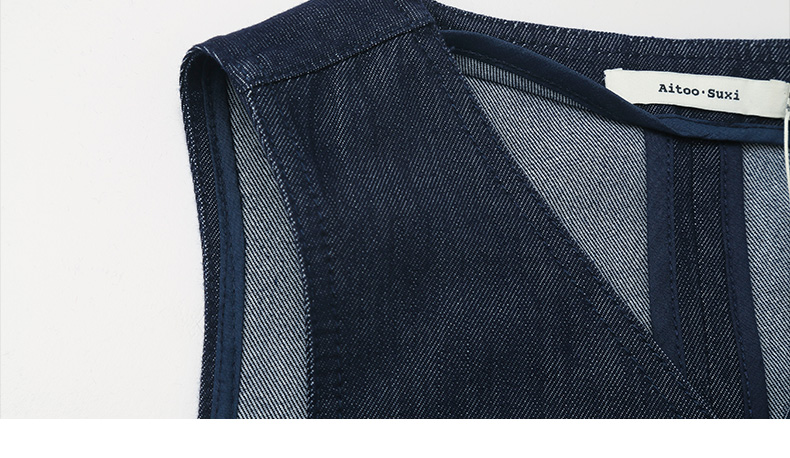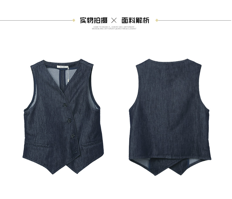 复古深蓝牛仔马甲 春季新款 V 领不规则下摆宽松显瘦外搭背心
