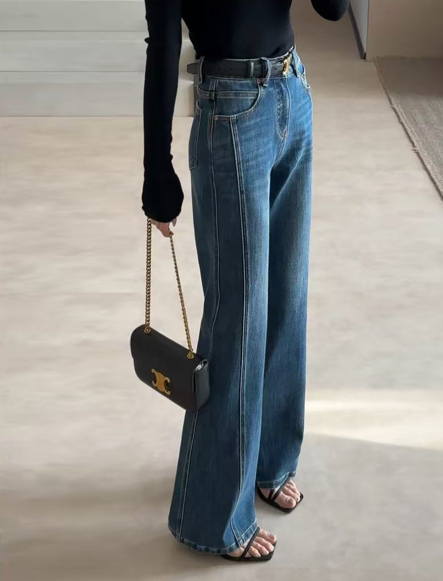 【柔软保暖❗️修饰腿型】筒喇牛仔裤女款2025秋冬季加绒长裤美式喇叭裤琉璃蓝i美娜同款。jb