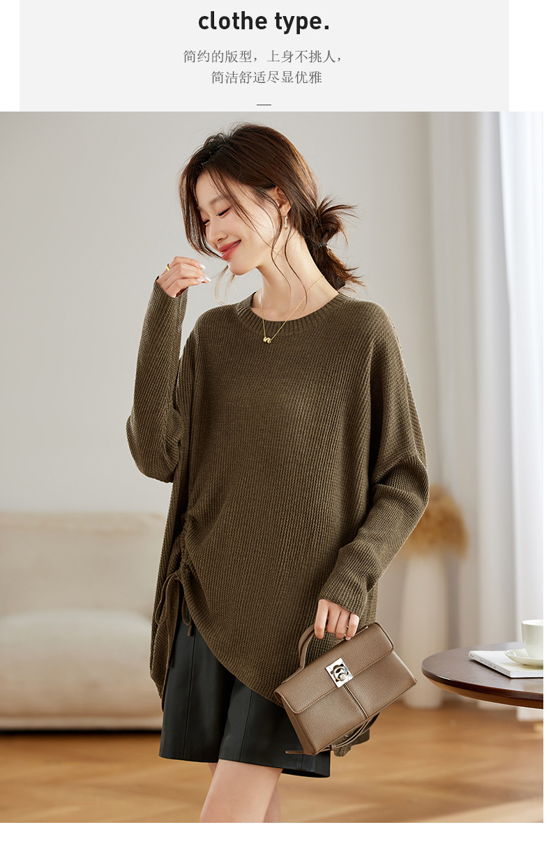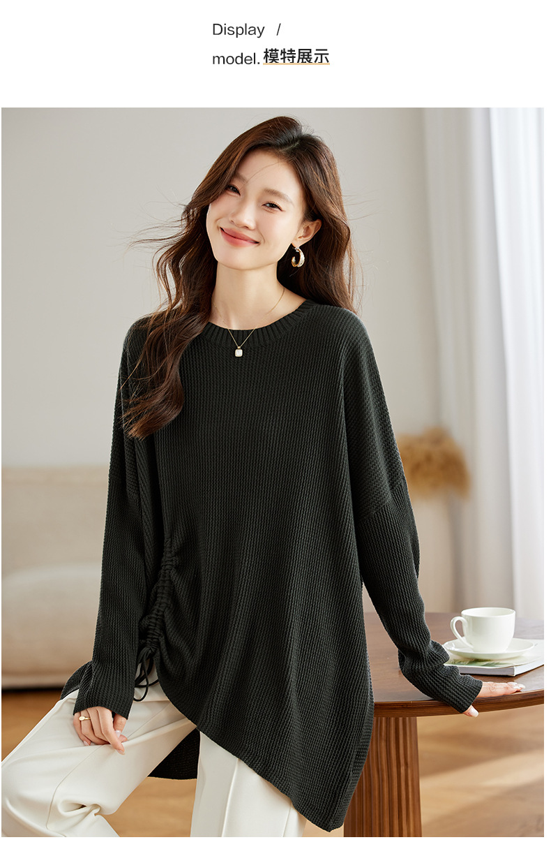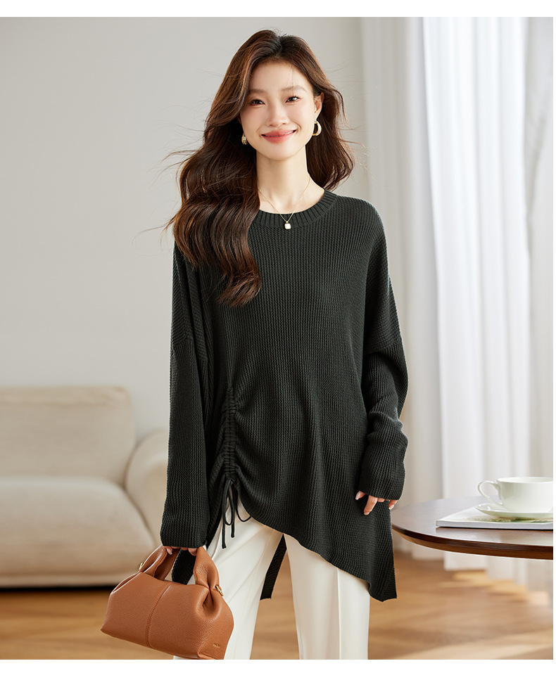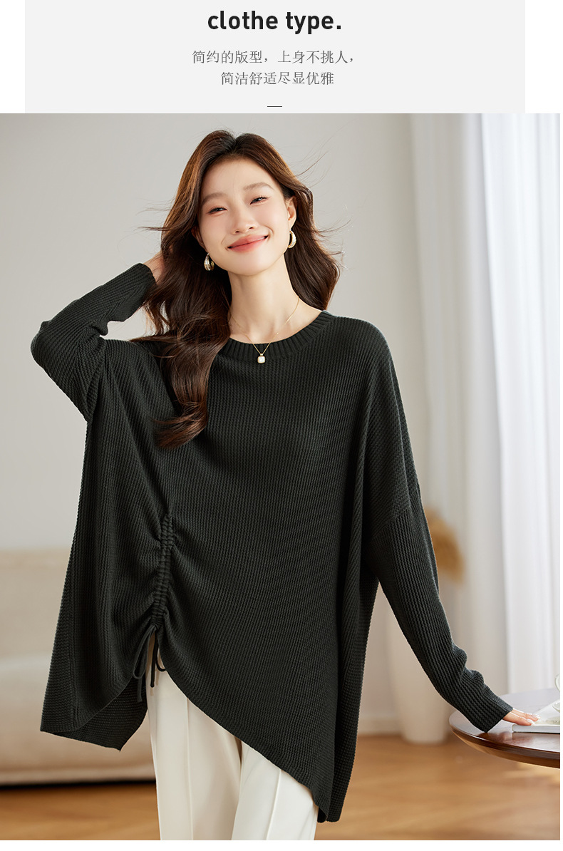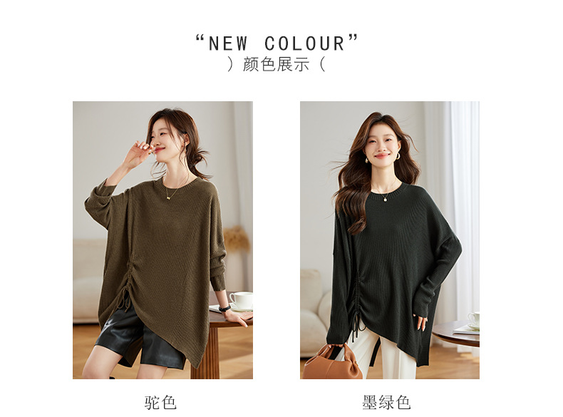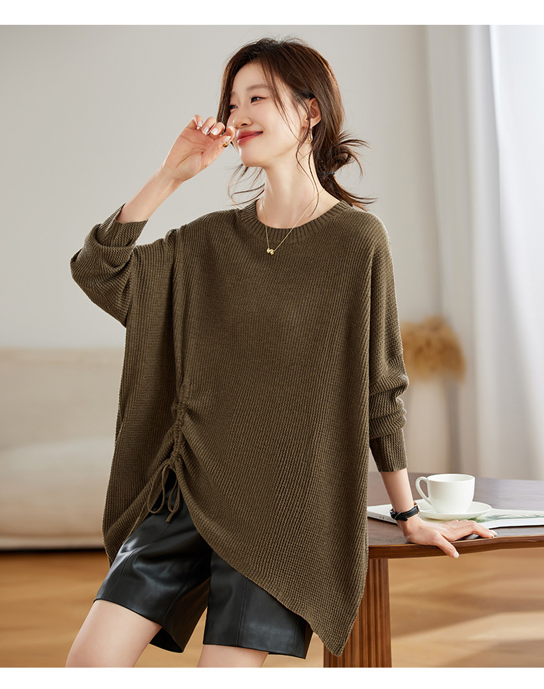CC-JDS-8873秋装长袖t恤女2024春秋新款不规则抽绳蝙蝠袖针织衫慵懒宽松毛衣
