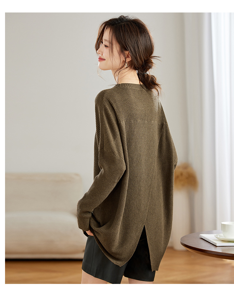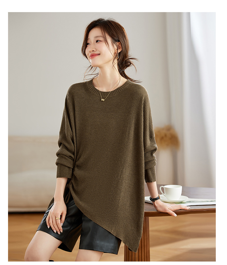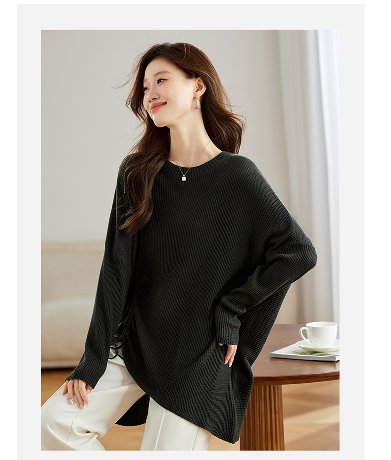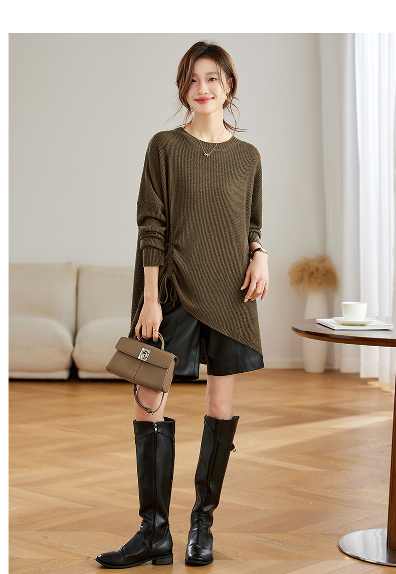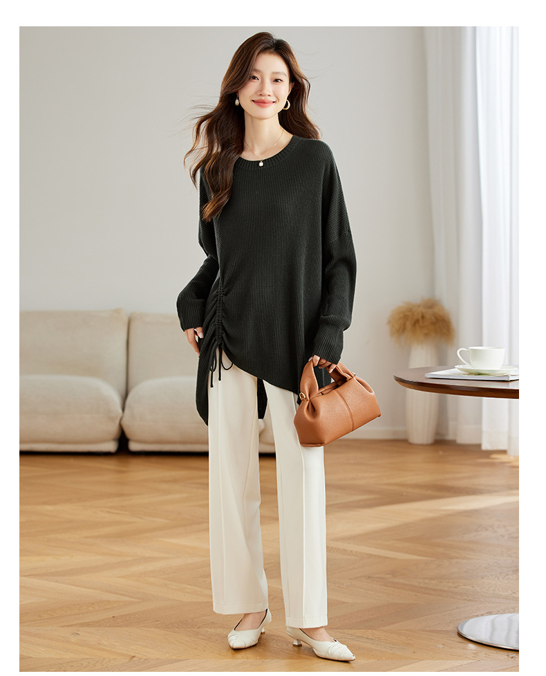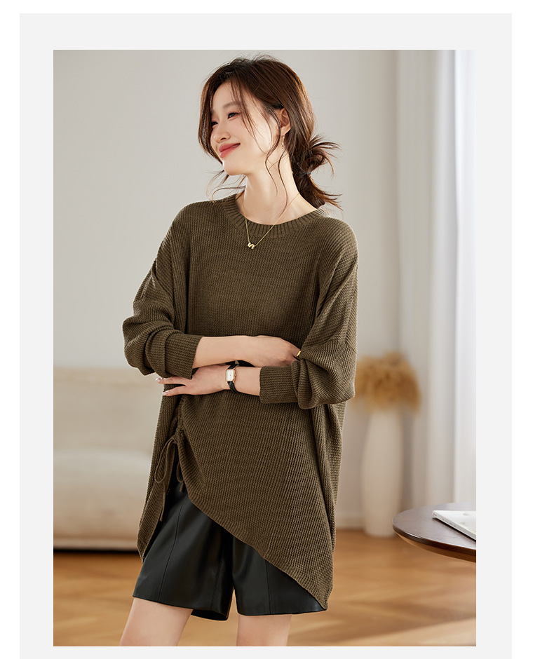 CC-JDS-8873秋装长袖t恤女2024春秋新款不规则抽绳蝙蝠袖针织衫慵懒宽松毛衣