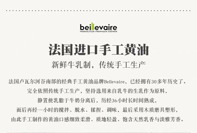 法国进口beillevaire冰淇淋手工黄油,爱马仕黄油,原味125g,咸味125g,零下18度存放