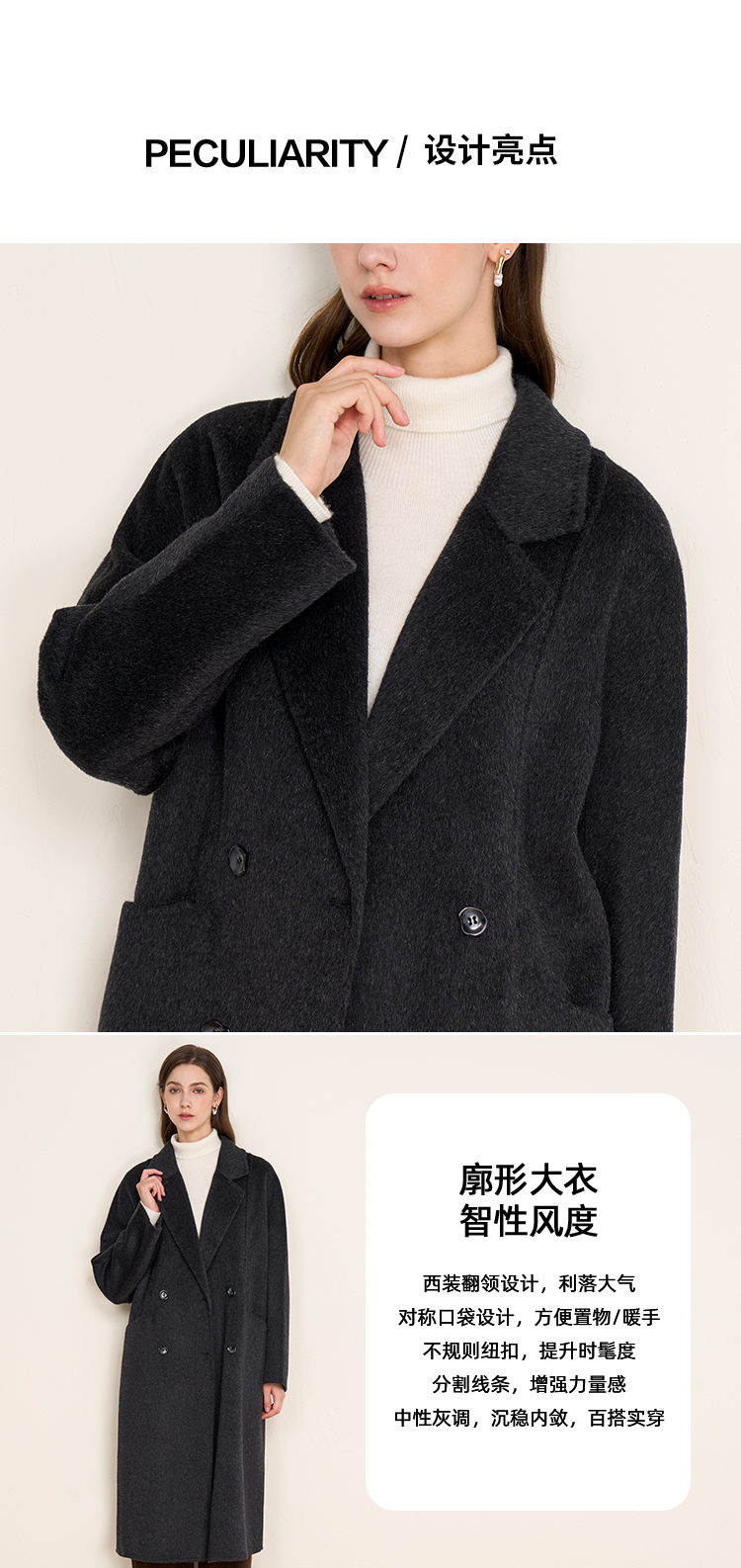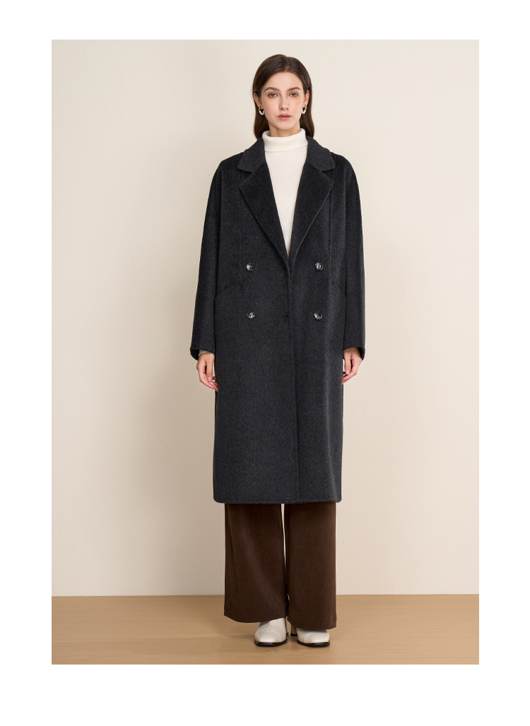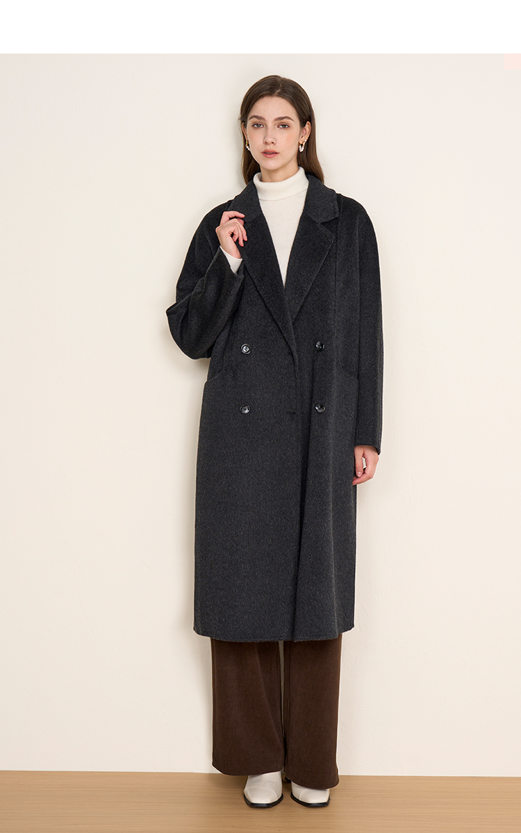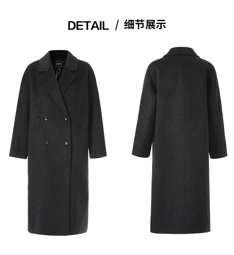 EITIE爱特爱深灰色廓形氛围感宽松显瘦羊毛呢大衣2025冬季新款D2514911