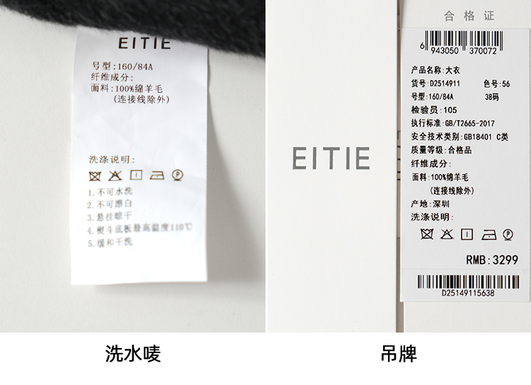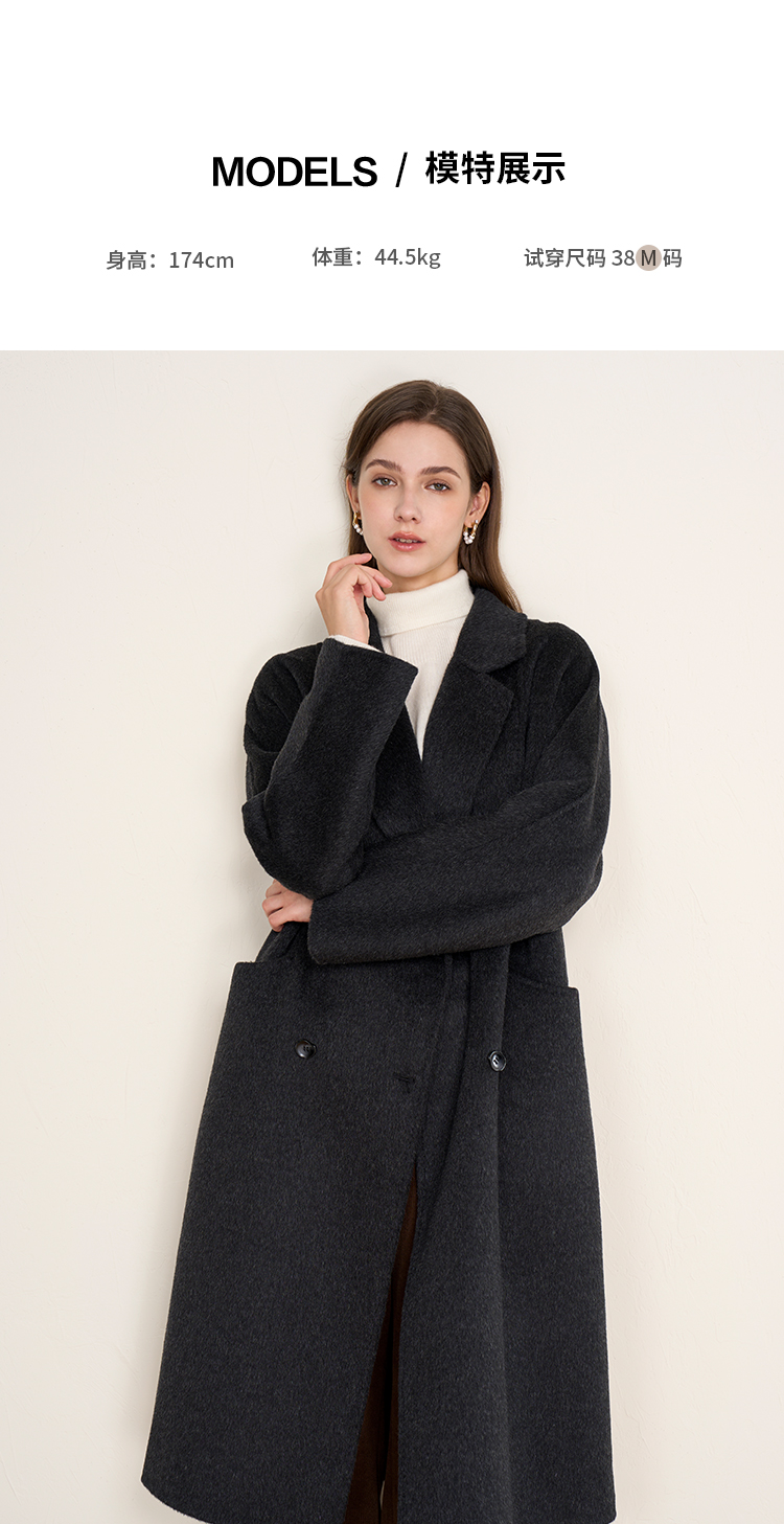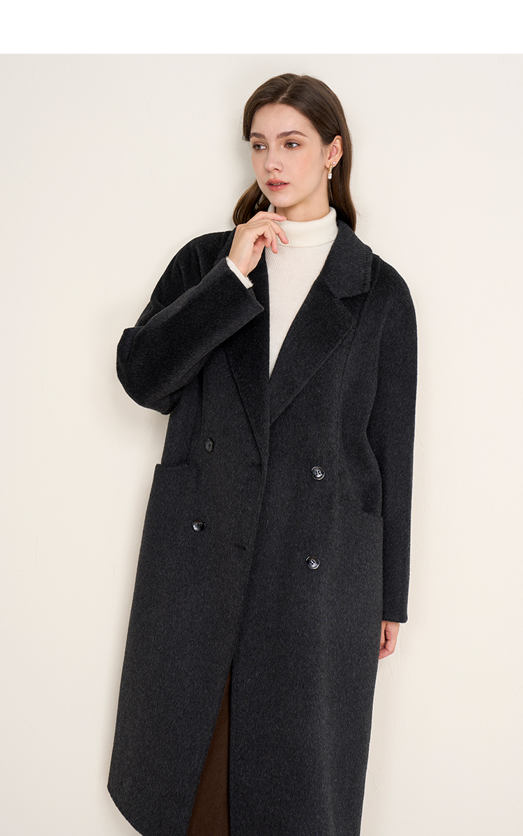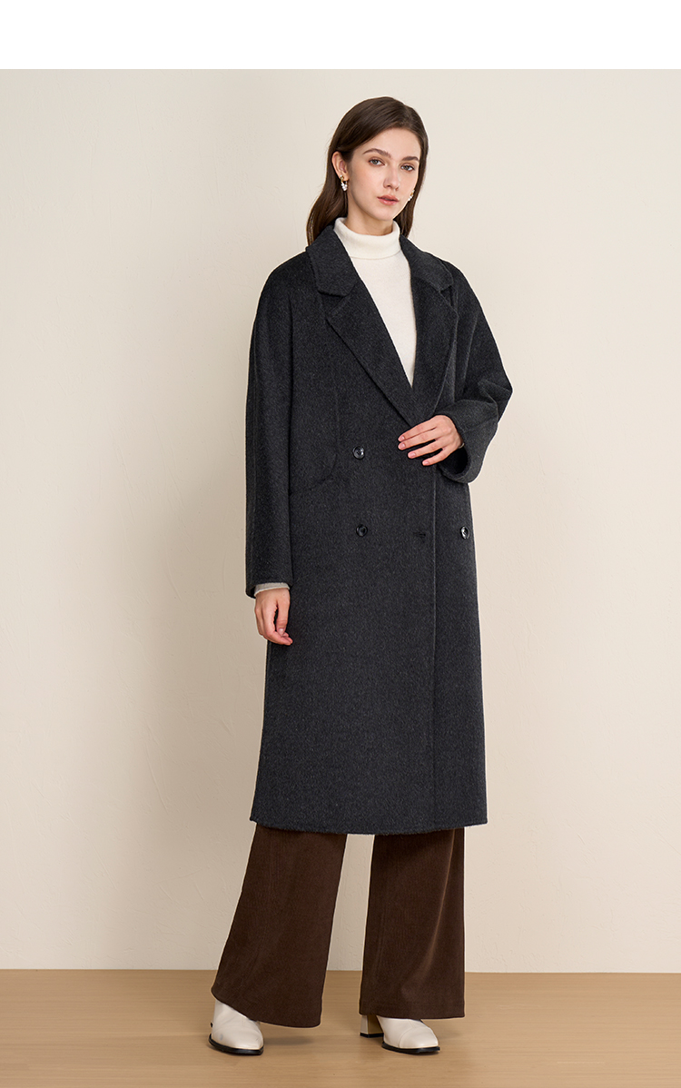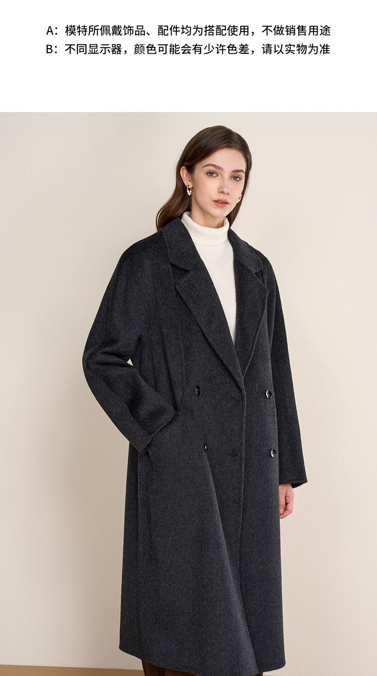 EITIE爱特爱深灰色廓形氛围感宽松显瘦羊毛呢大衣2025冬季新款D2514911