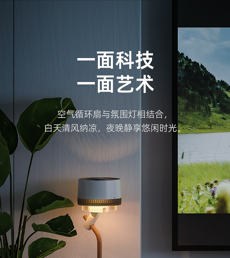 大宇空气循环扇 家用轻音立式智能摇头落地扇净化氛围灯小型电风扇F30 PRO