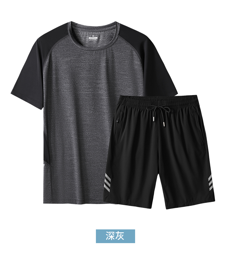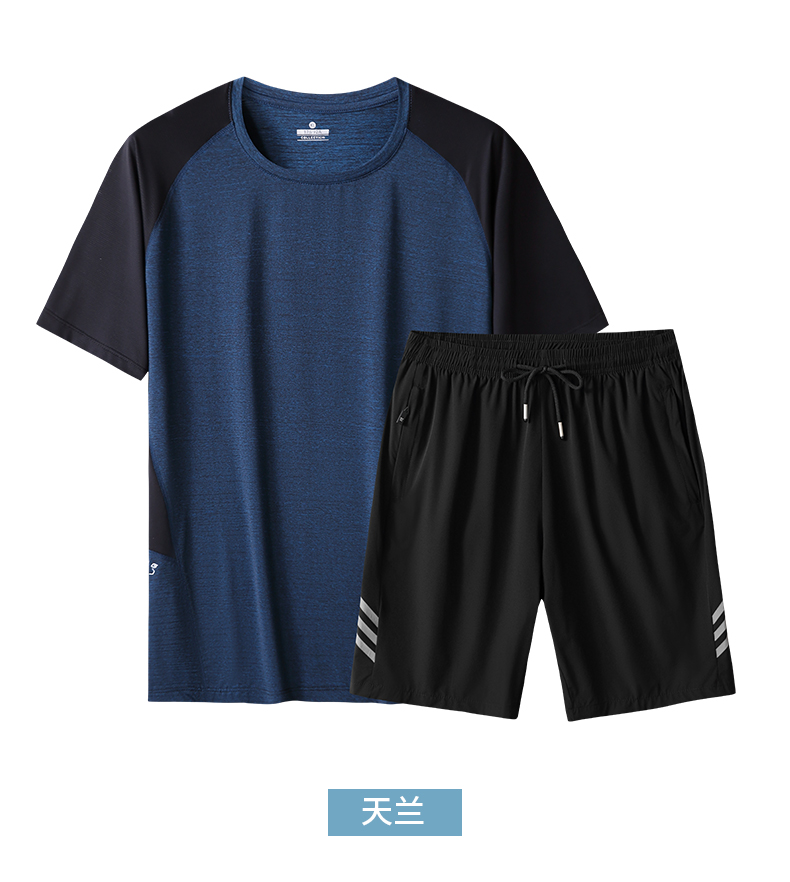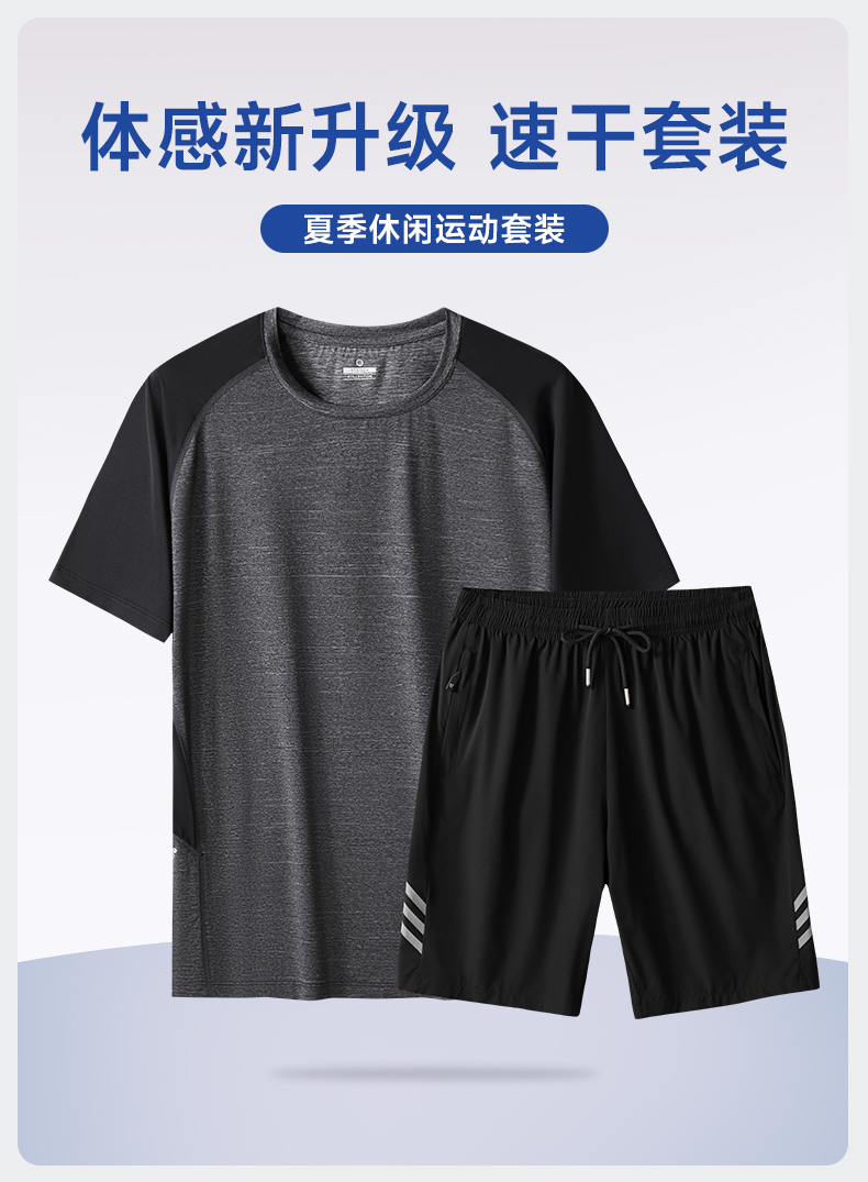 【Q】【冰丝速干】【新款DSF】大依优型大码男装夏季套装运动休闲加肥加大短袖短裤大号T恤套装夏装