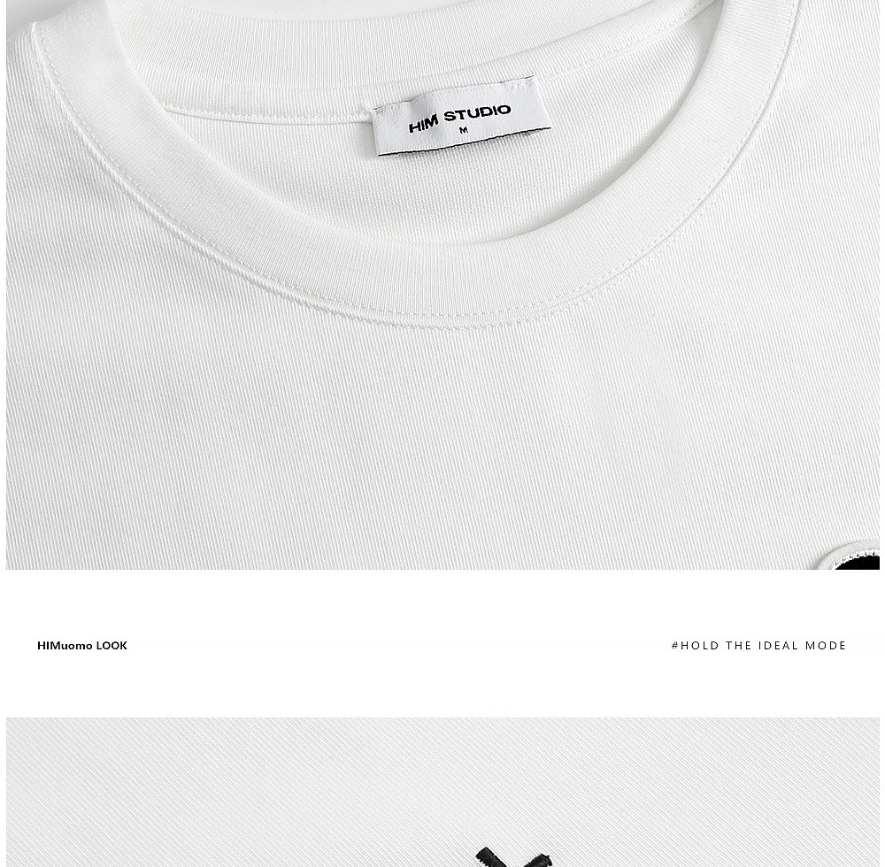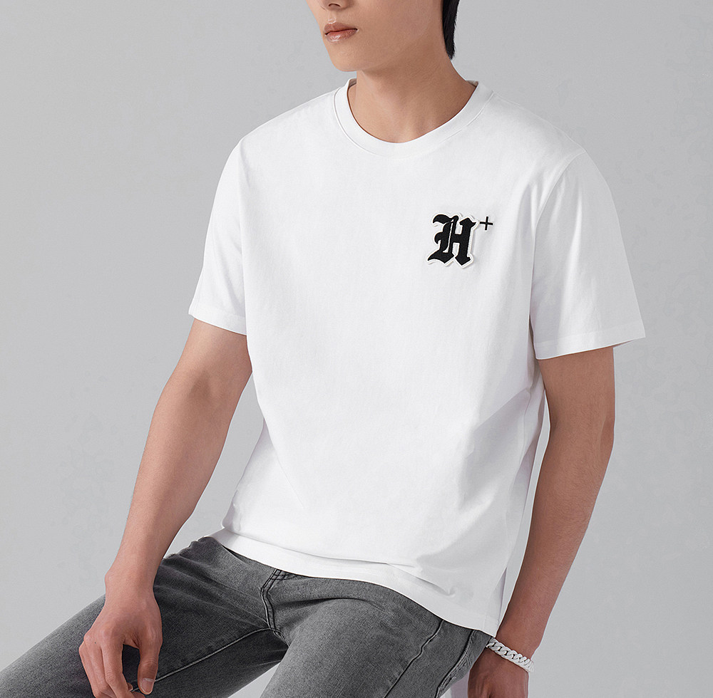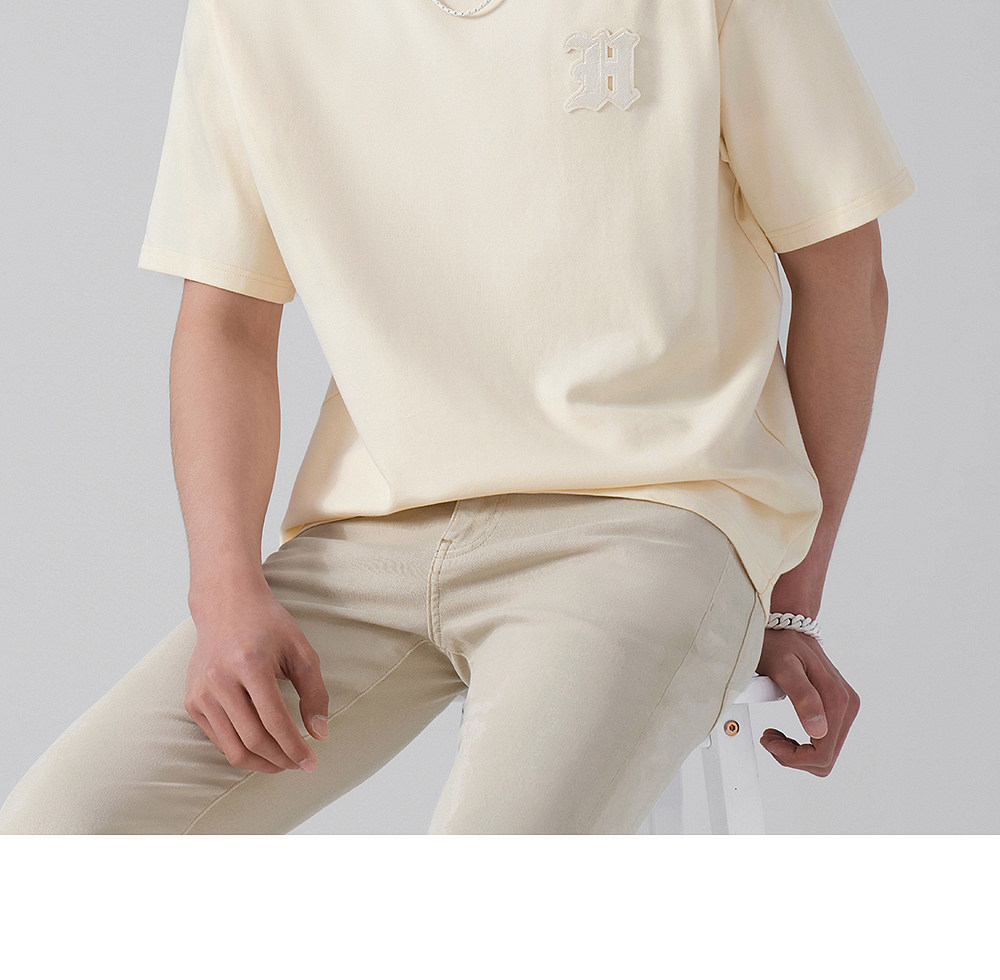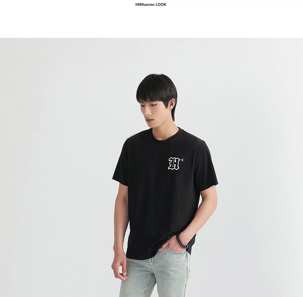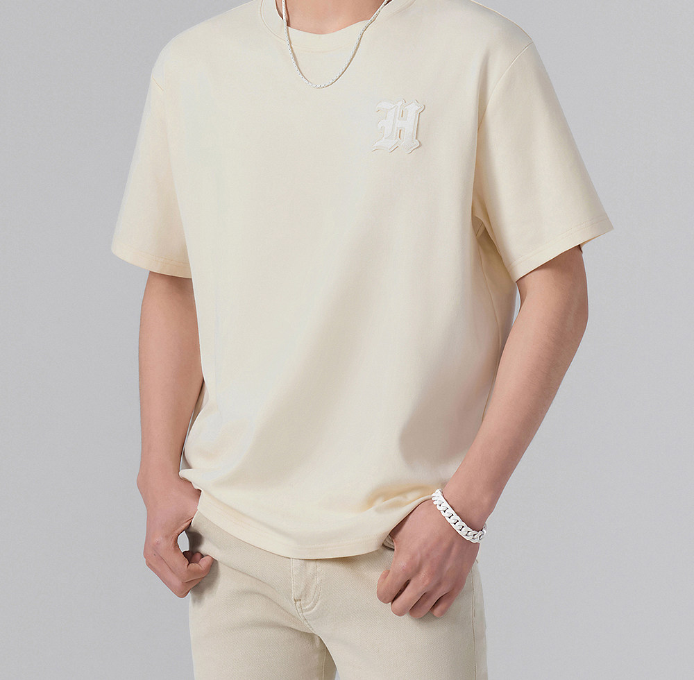 HIM漢崇 轻薄透气圆领T恤男简约字母贴布绣休闲短袖上衣 2026夏季