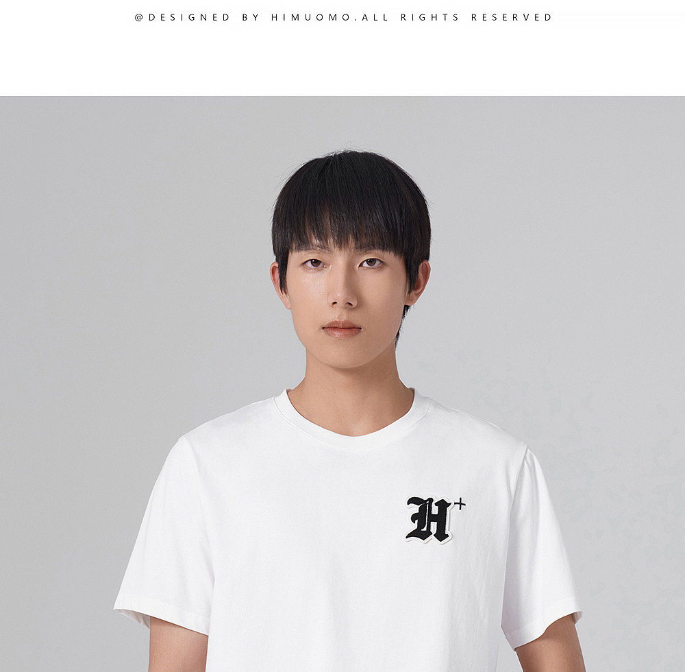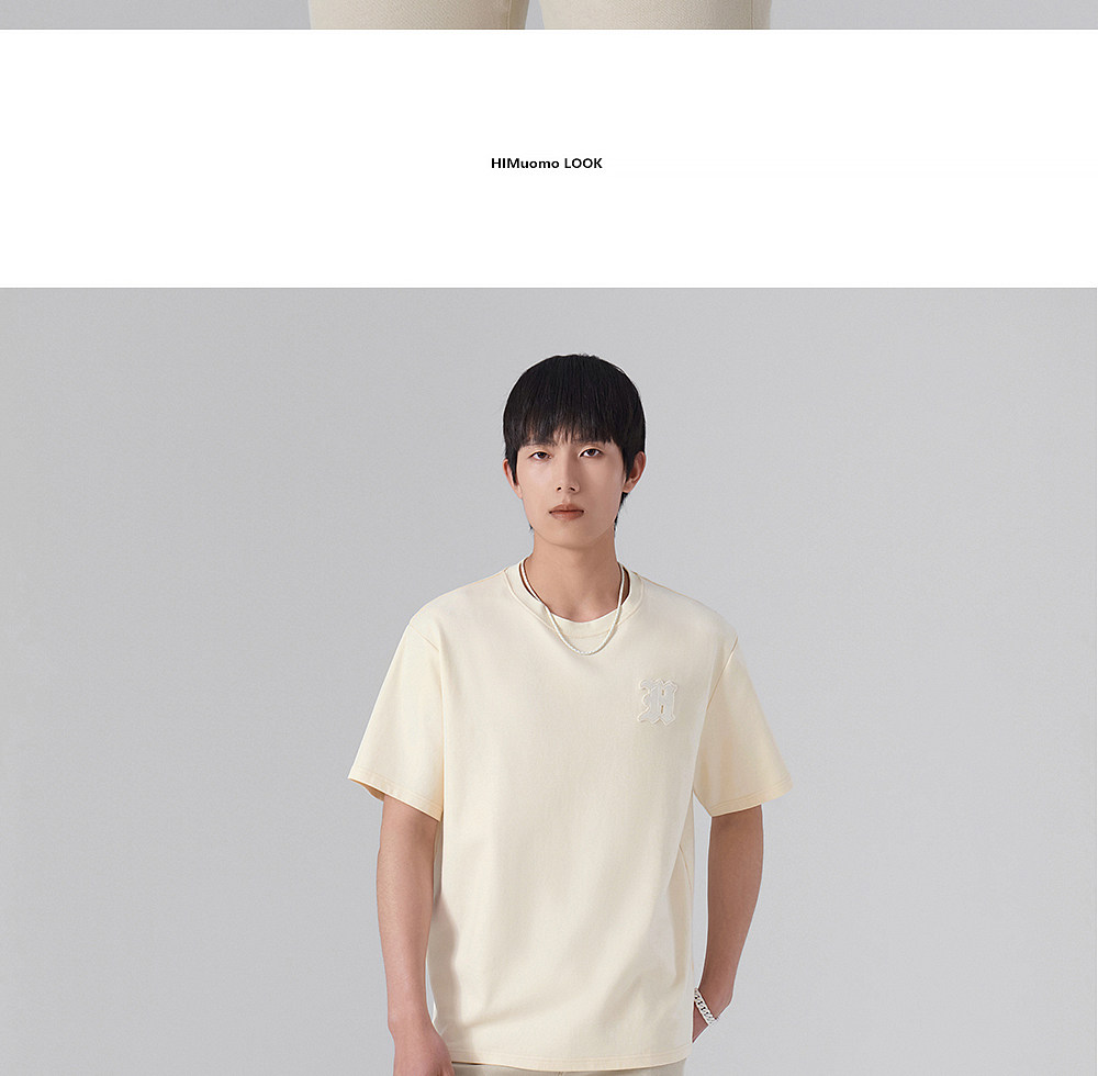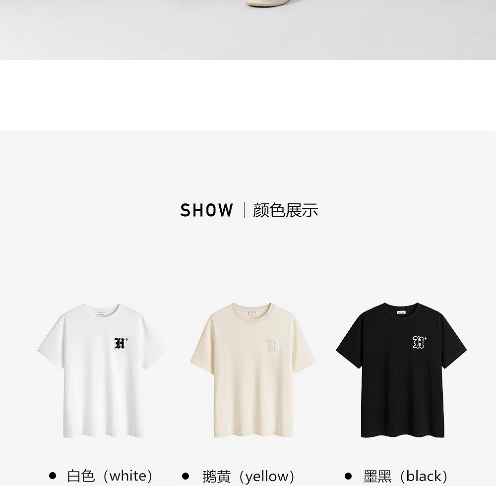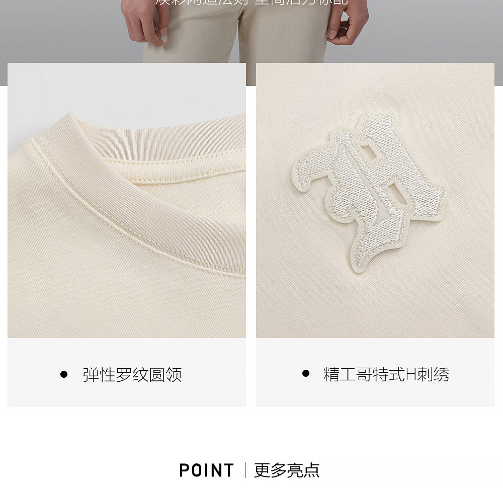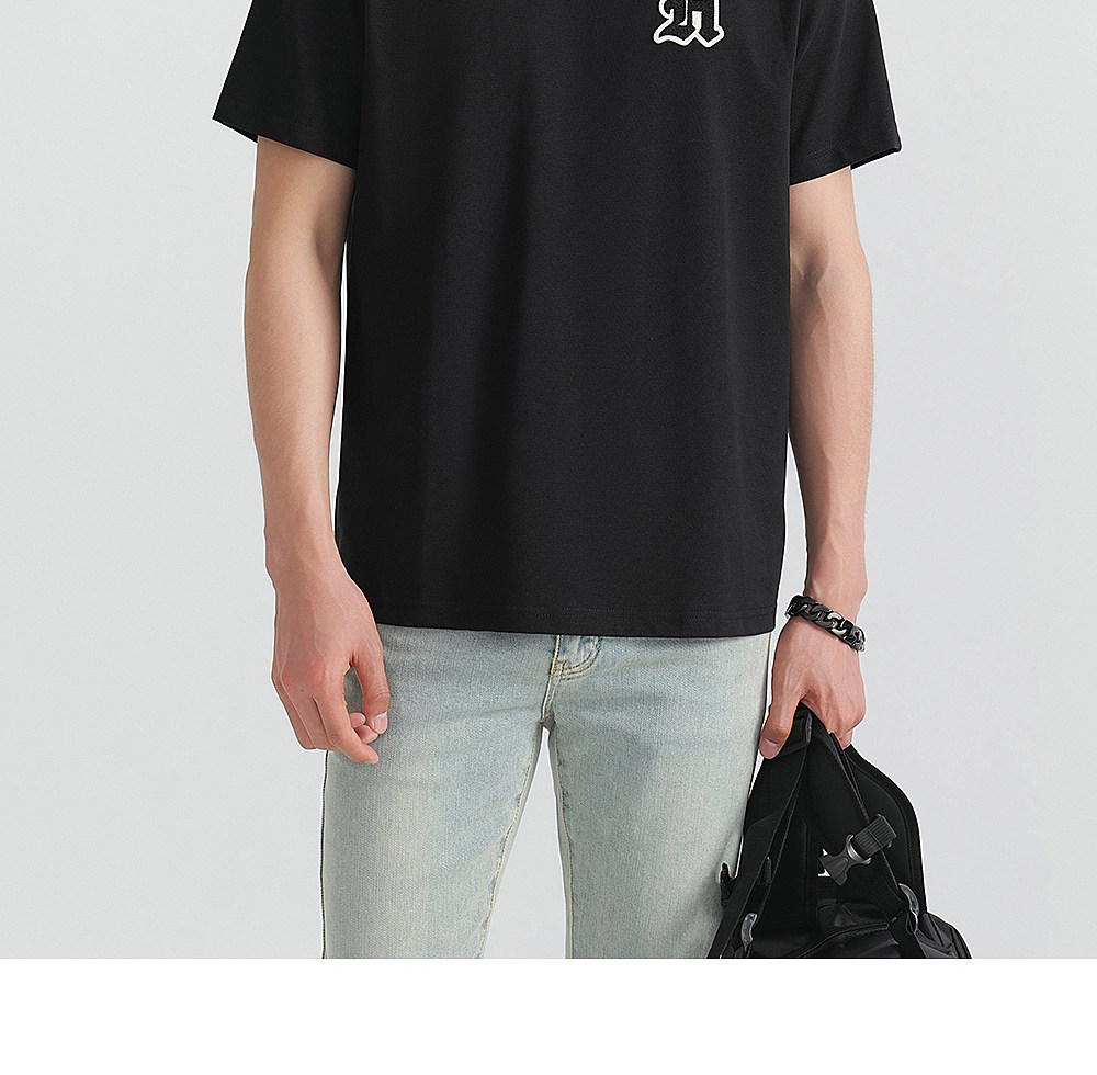 HIM漢崇 轻薄透气圆领T恤男简约字母贴布绣休闲短袖上衣 2026夏季