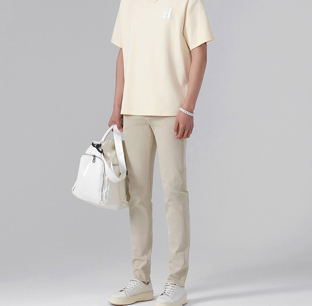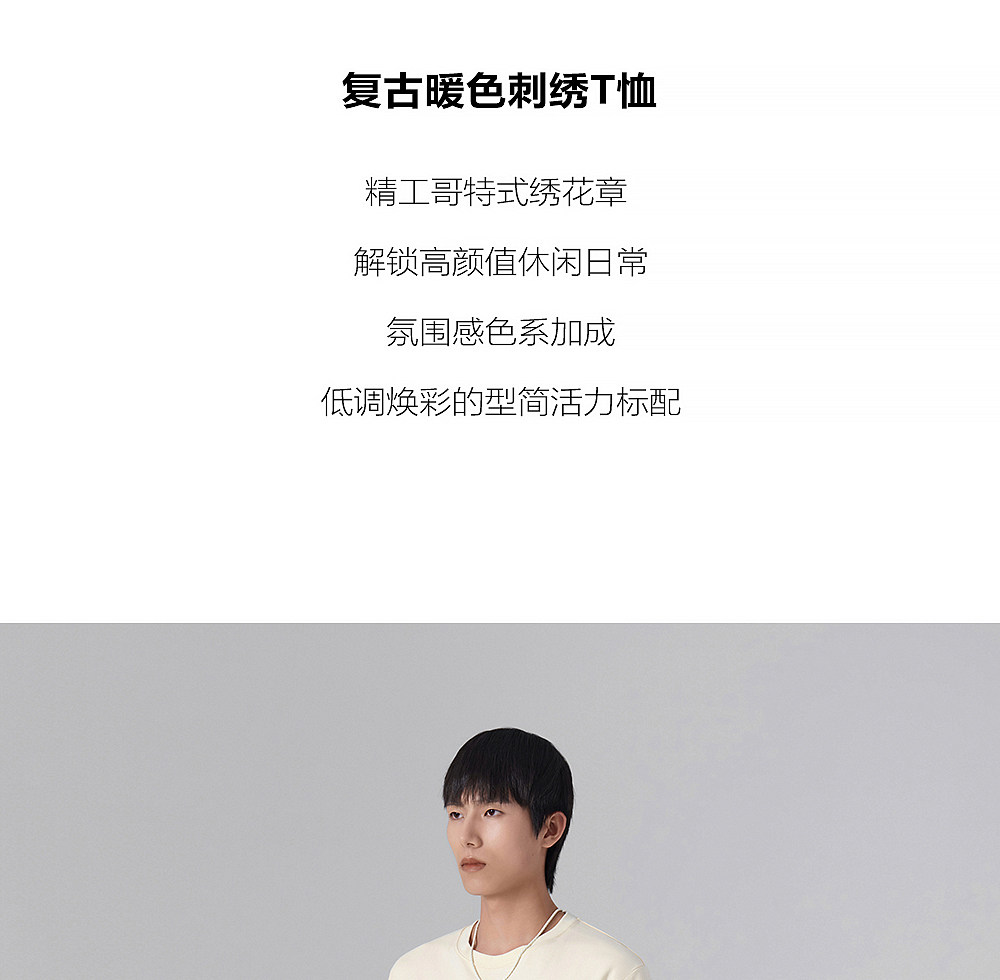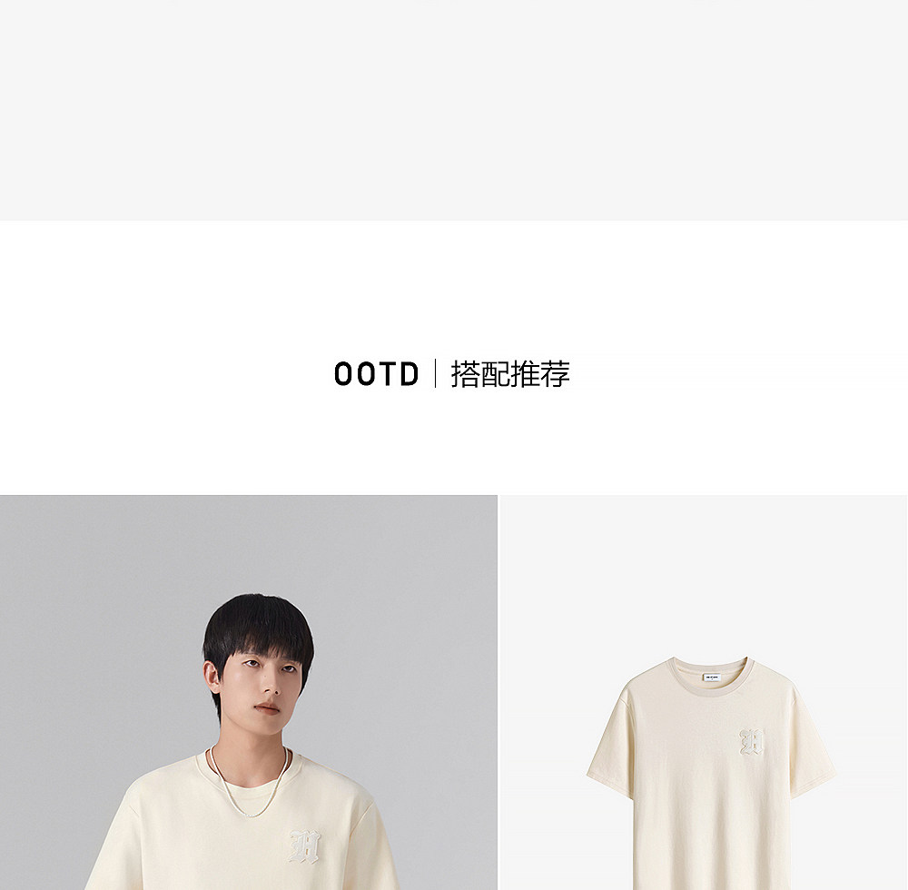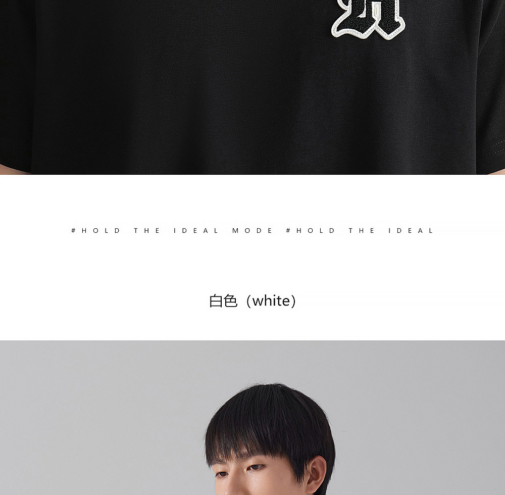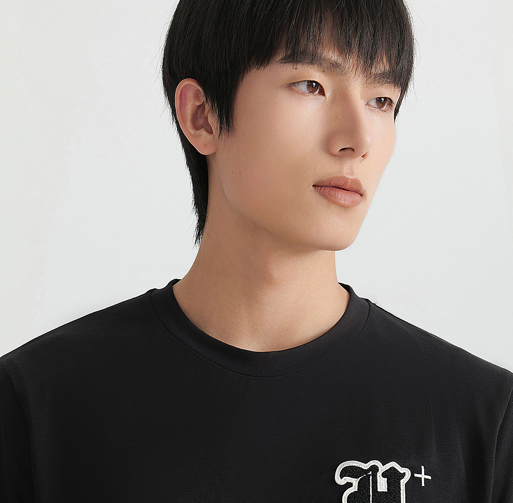 HIM漢崇 轻薄透气圆领T恤男简约字母贴布绣休闲短袖上衣 2026夏季