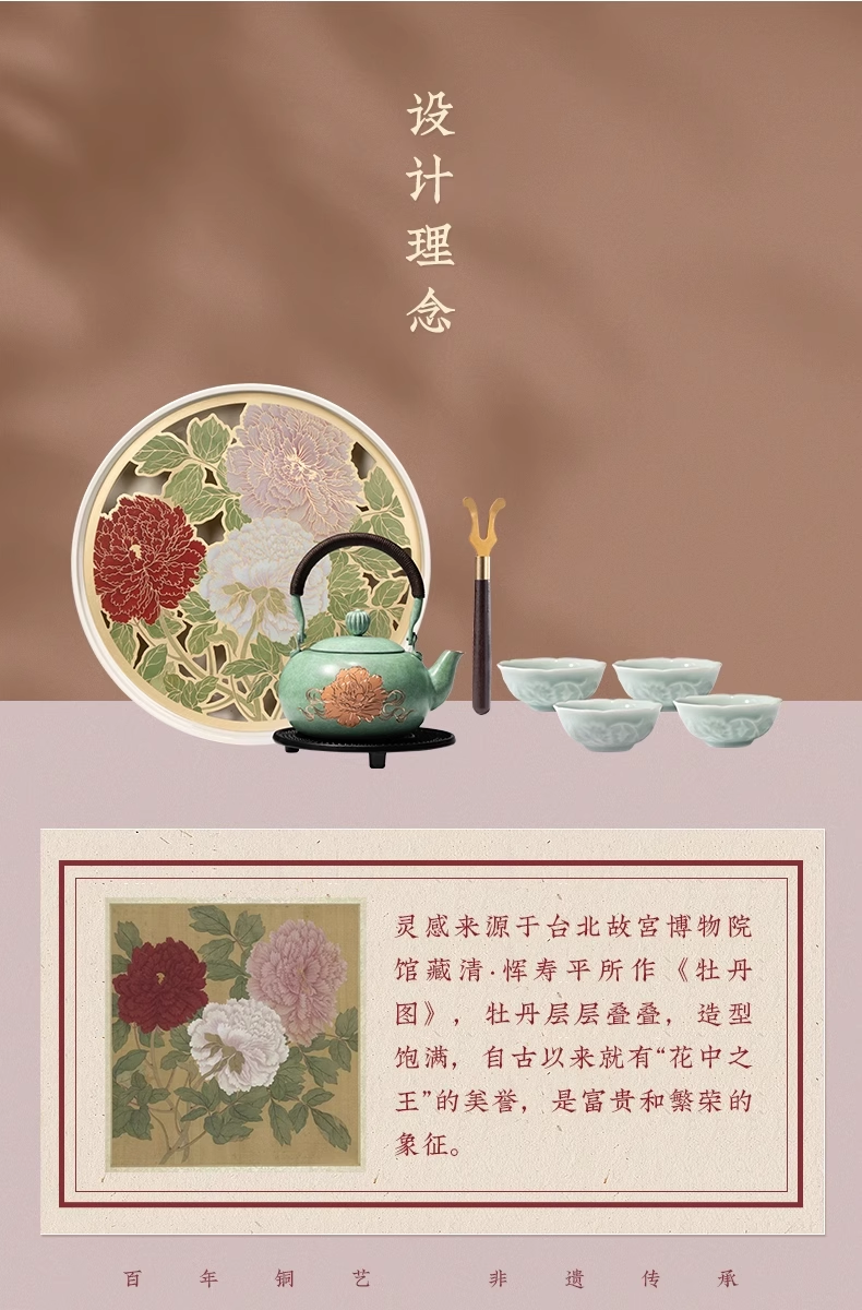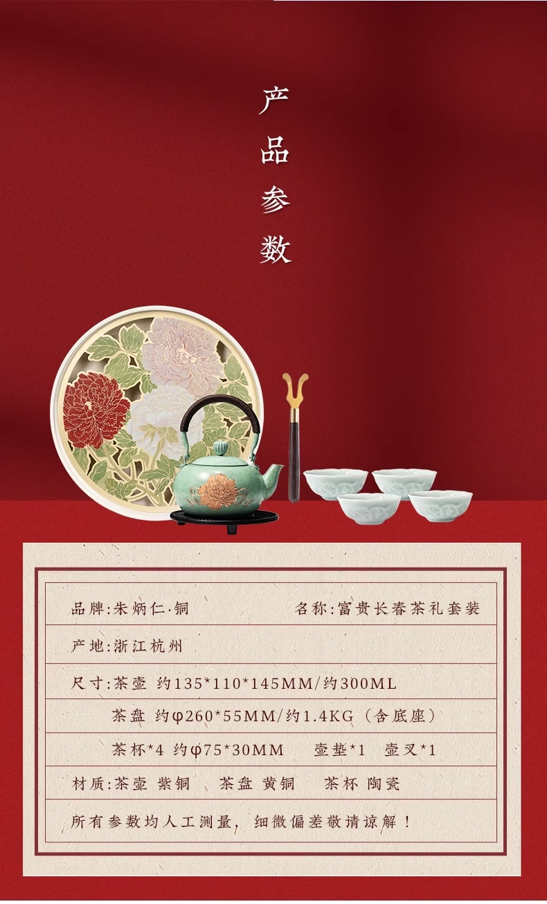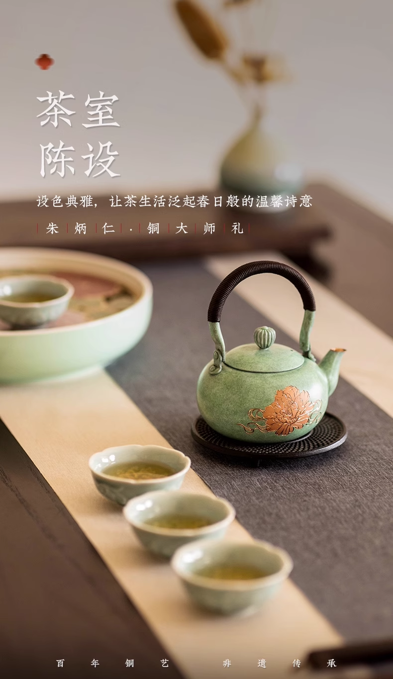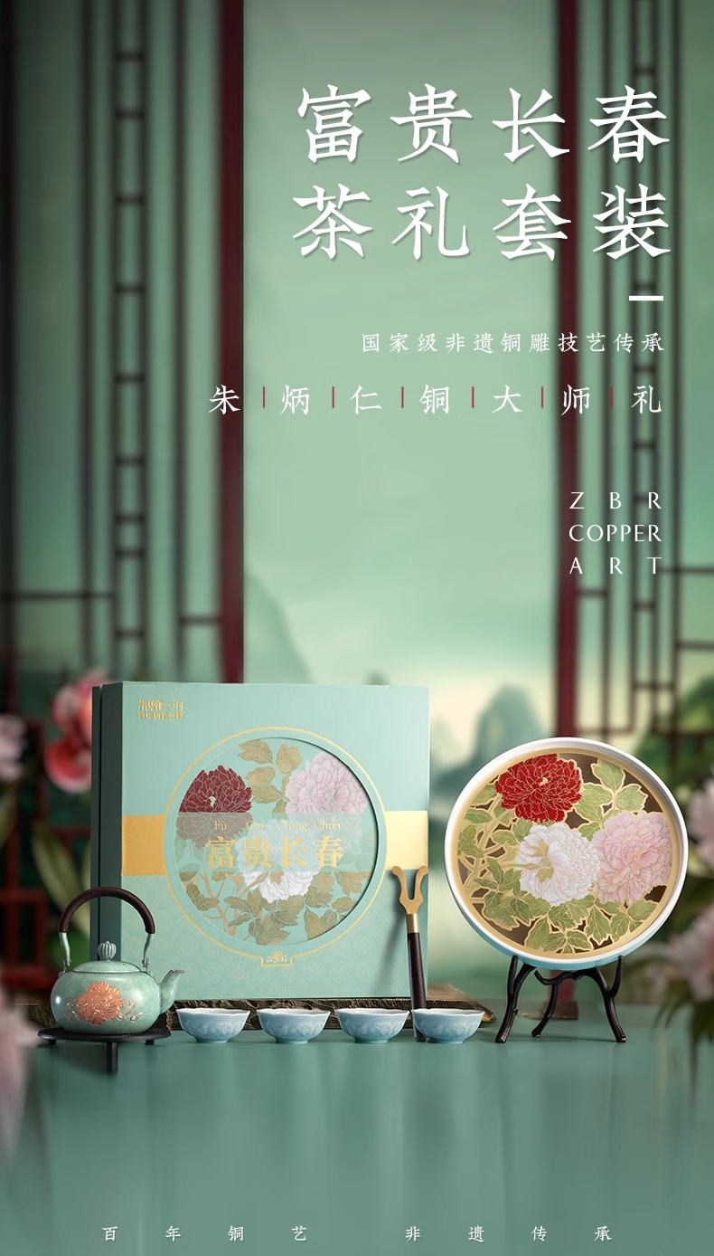 朱炳仁铜 富贵长春茶礼套装