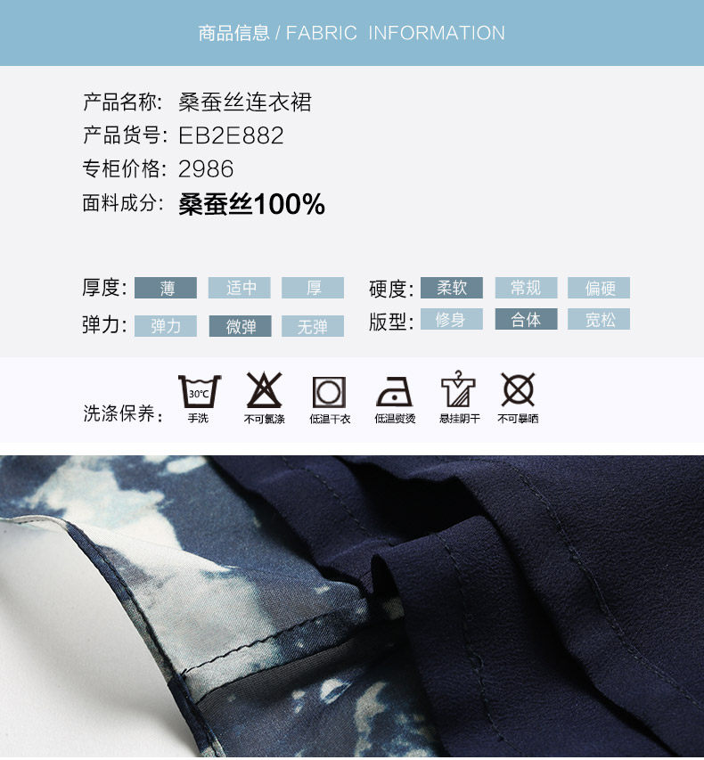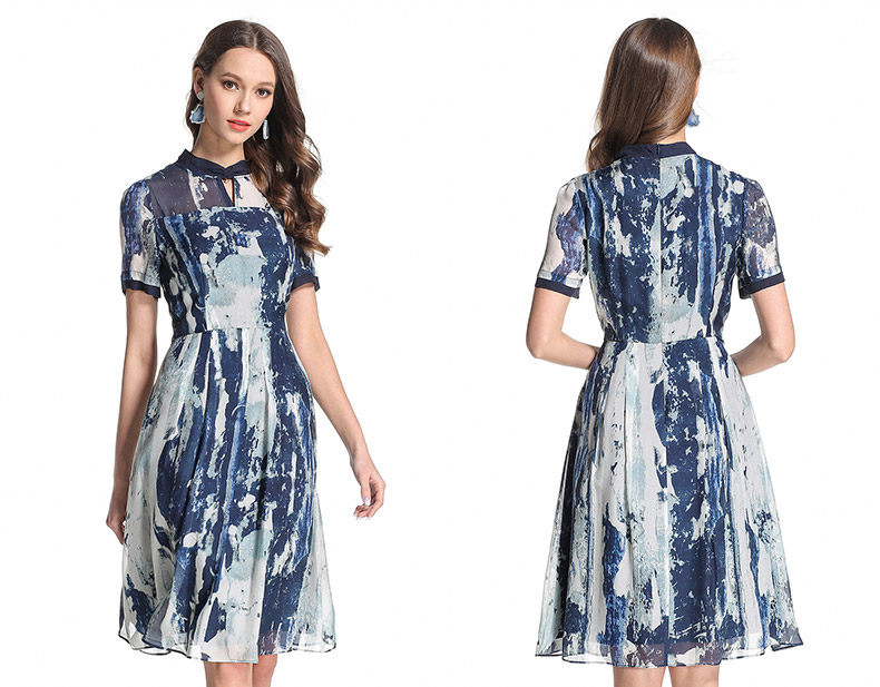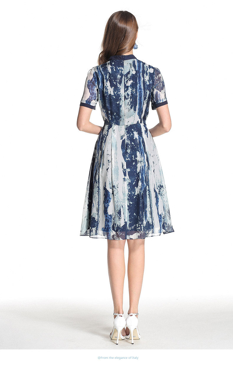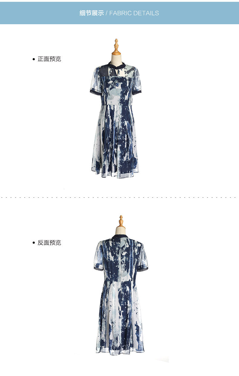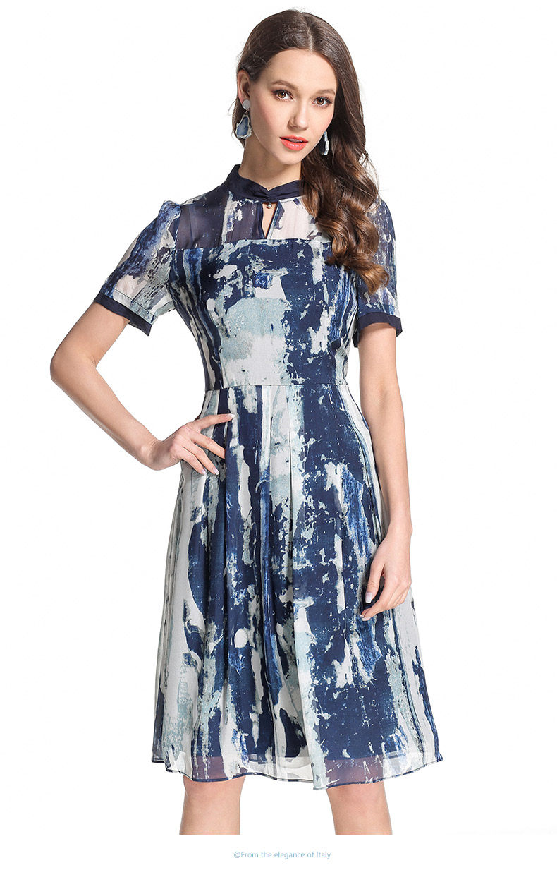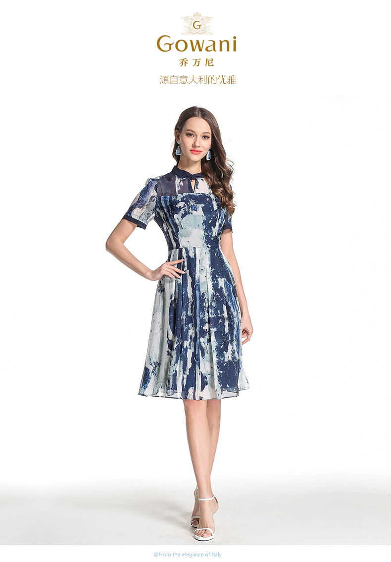 乔万尼夏季真丝连衣裙桑蚕丝印花收腰短袖a字裙EB2E882
