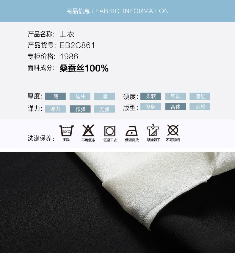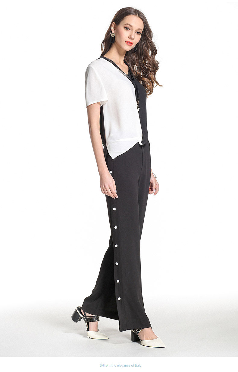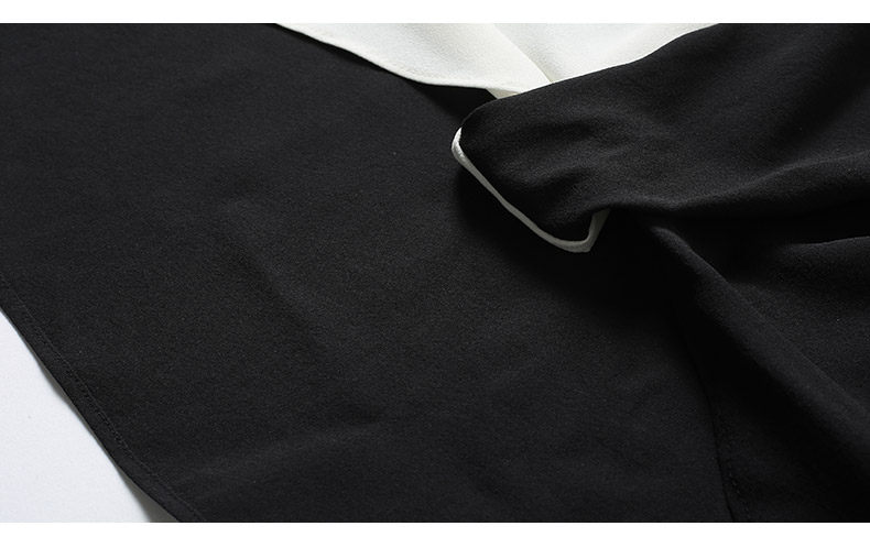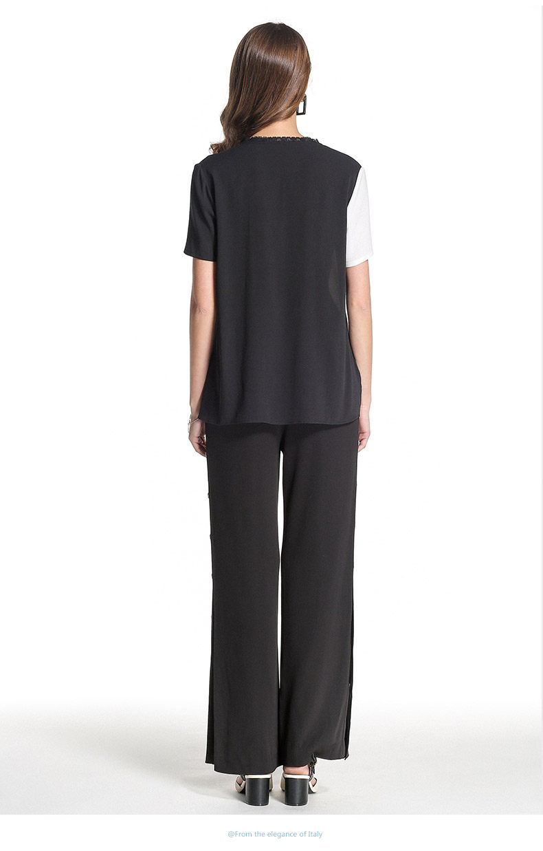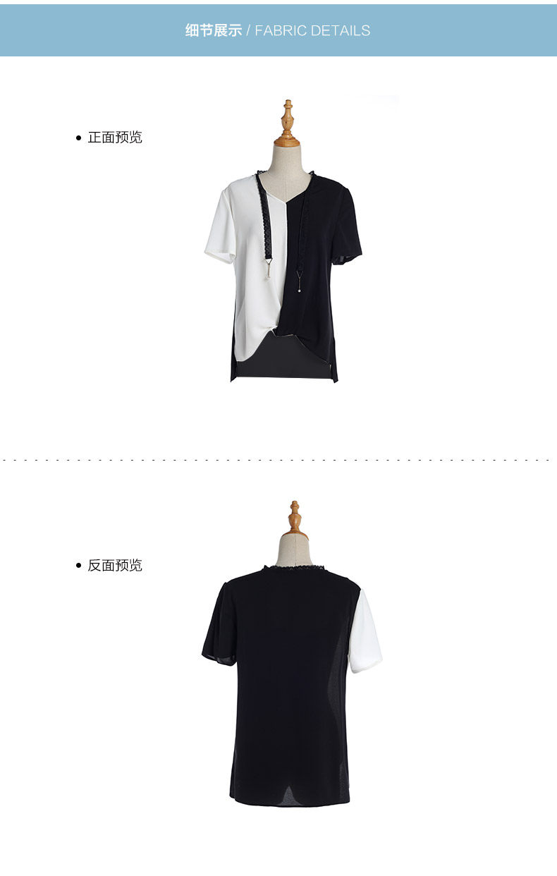 乔万尼桑蚕丝衬衫v领时尚黑白拼色宽松短袖真丝上衣EB2C862