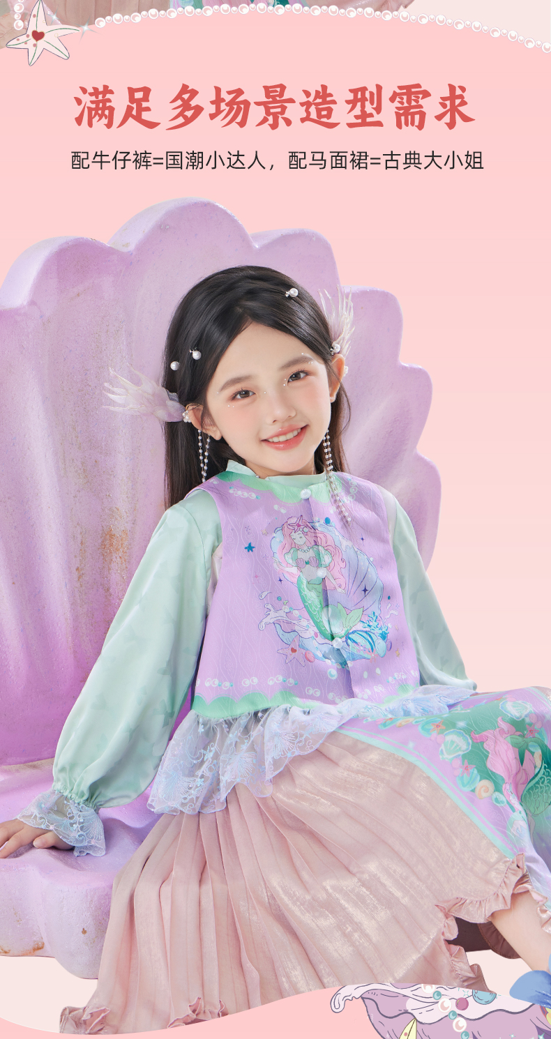 【浪里小仙中式马甲】年衣童装女童马甲秋季新款女孩新中式国风儿童马夹背心上衣演出服浪里小仙中式马甲