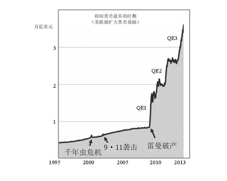 下图表明,在每次崩盘之后,美国政府和联邦储备银行就开始“印钞票”。