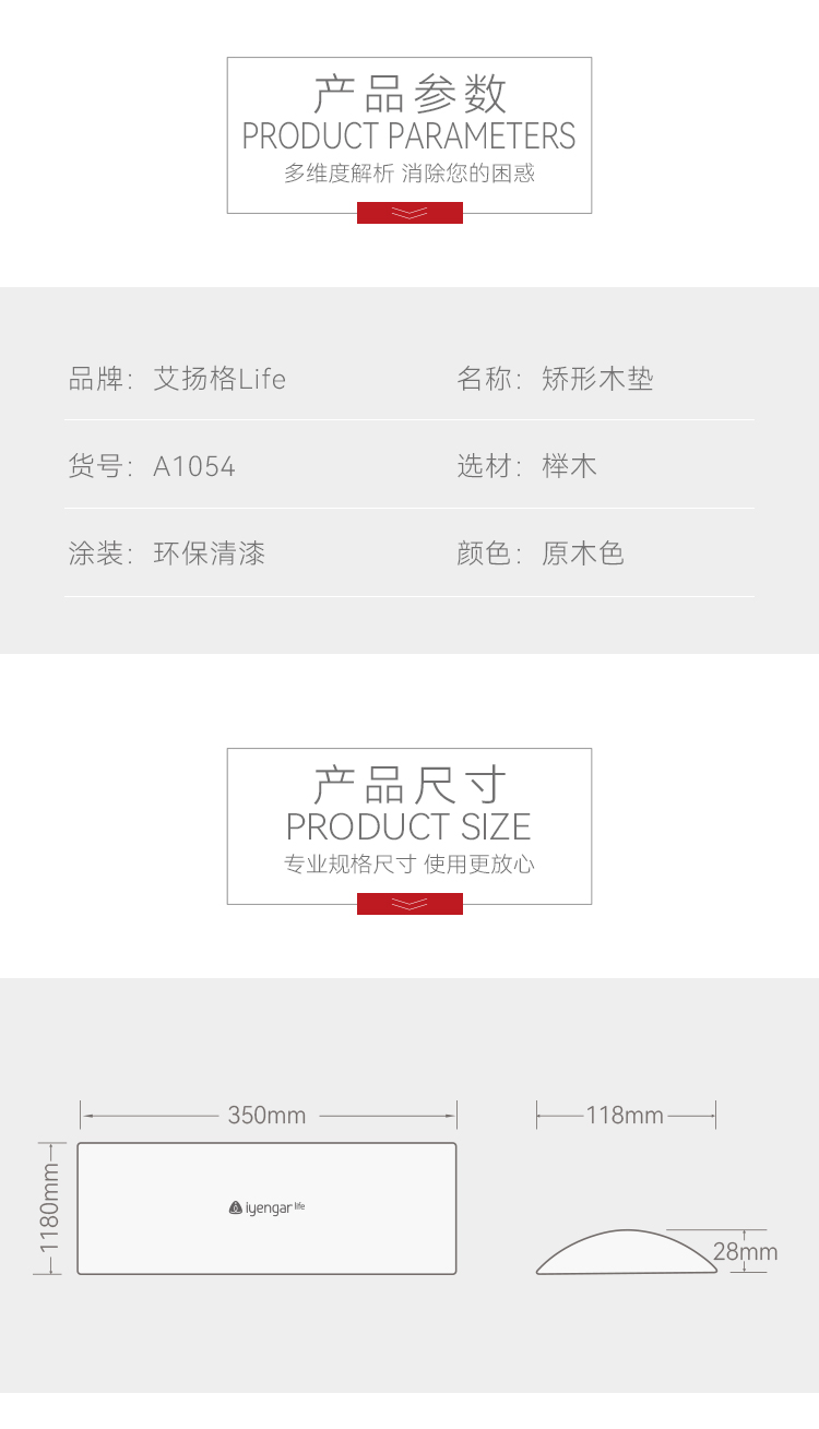 艾扬格 life A1054 扁平足矫形木垫 榉木帮助扁平足习练让脚弓感知觉知