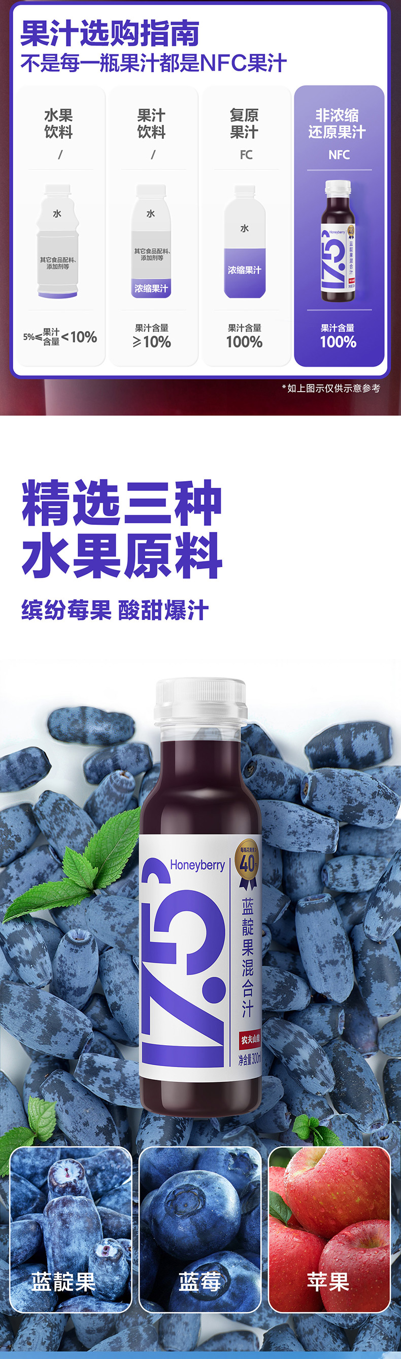 300ml农夫山泉17.5°100%鲜果榨蓝靛果混合汁