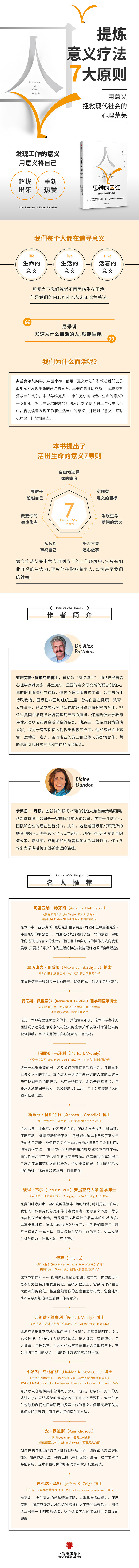 师从维克多·弗兰克尔,与《活出生命的意义》一脉相承,提炼意义疗法七大原则,用意义拯救现代社会的心理荒芜,发现工作的意义,用意义将自己超拔出来,重新热爱。