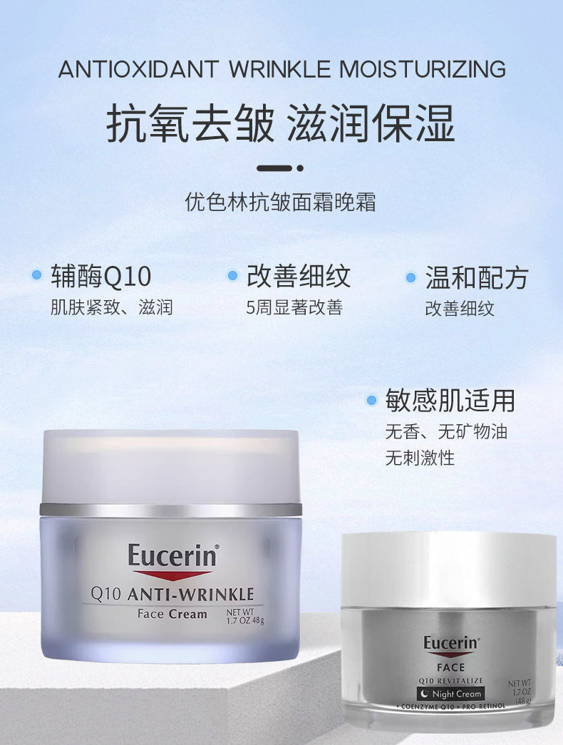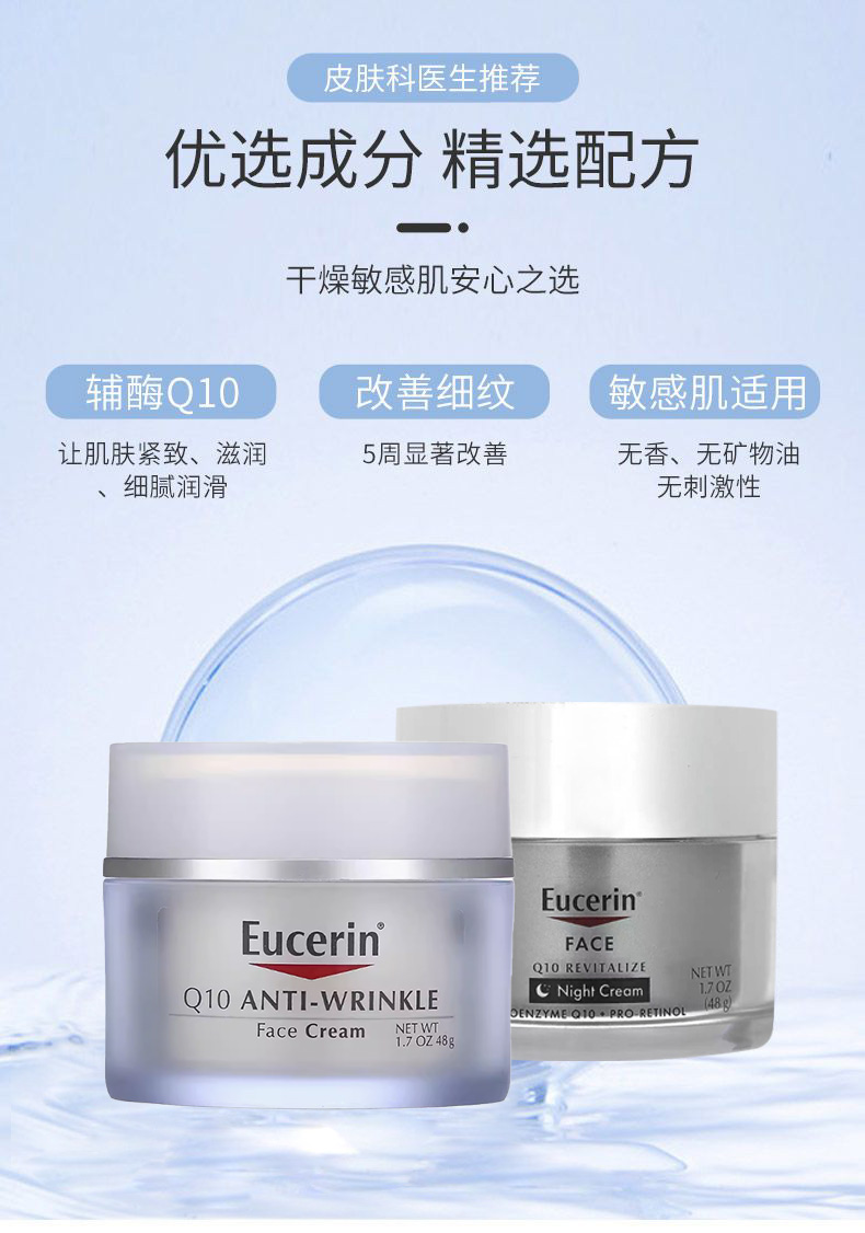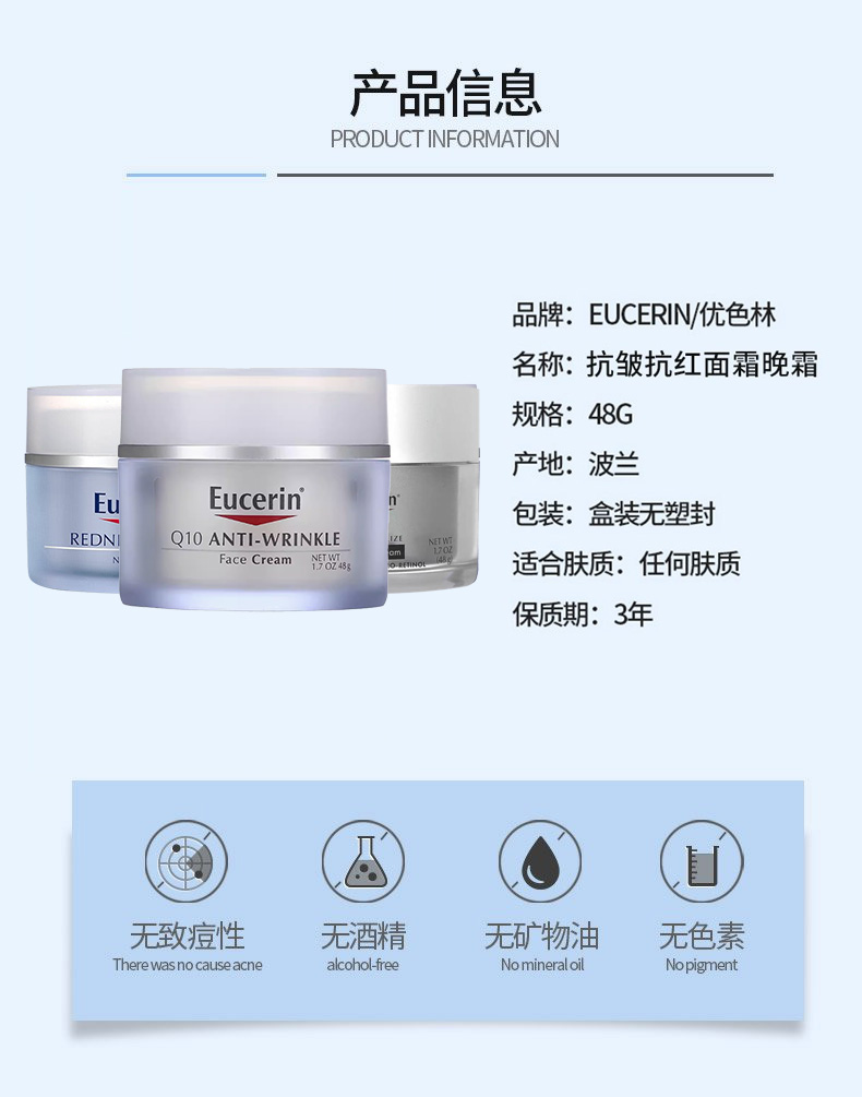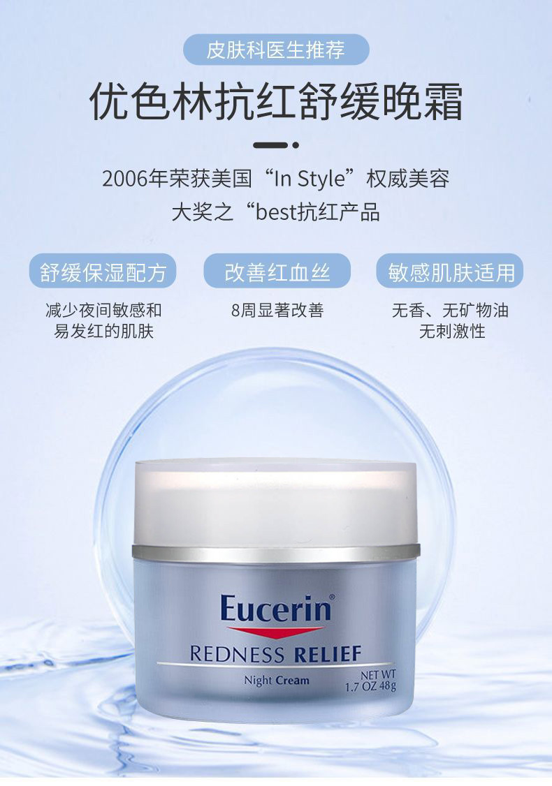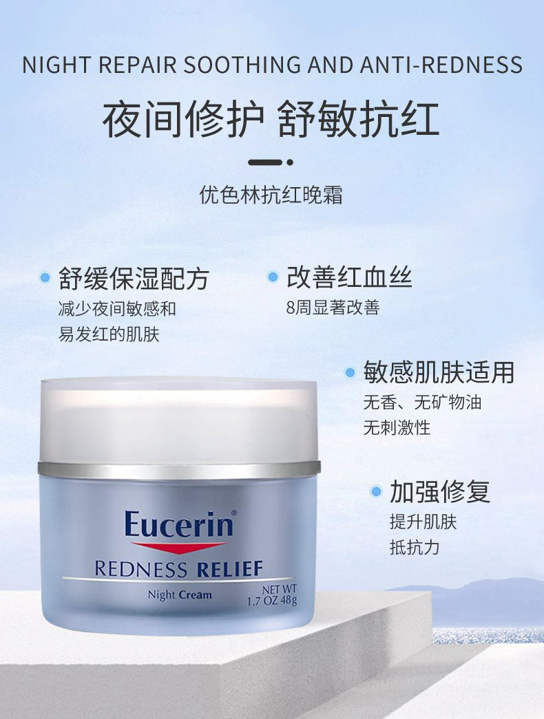 【保税直邮 义乌海关】Eucerin优色林保湿抗皱修护细纹抗红面霜48g 敏感肌可用
