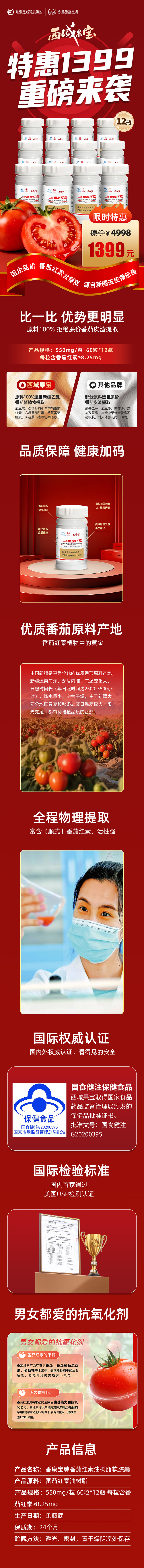 西域果宝番茄红素550mg/粒 60粒*12瓶 每粒含番茄红素≥8.25mg
