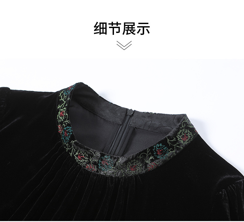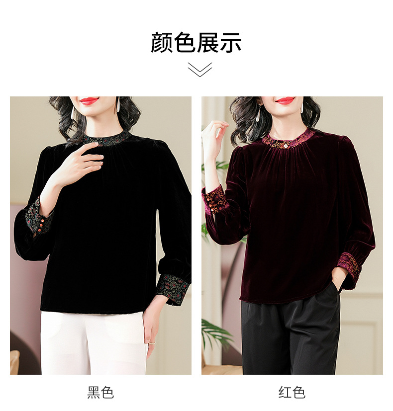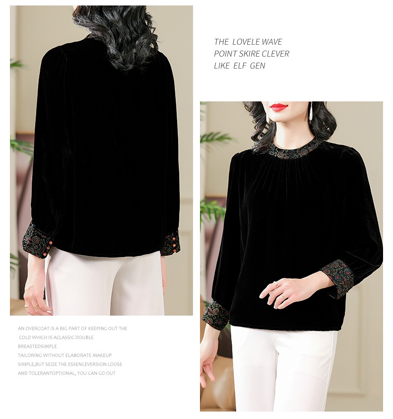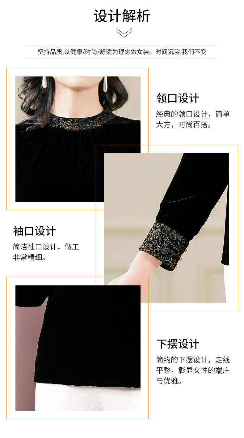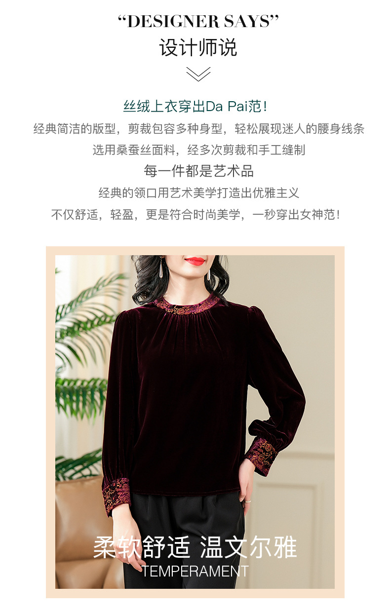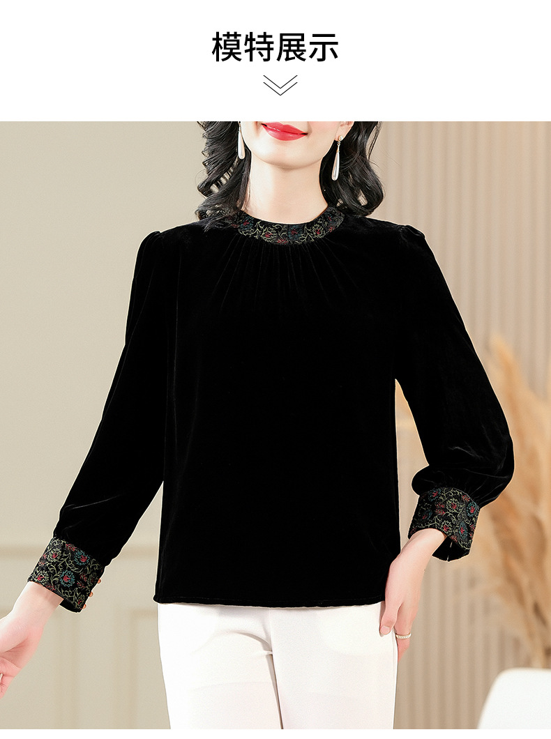 SM5058 新款高品质100真丝绒国风刺绣桑蚕丝上衣女长袖丝绒上衣 商品图4