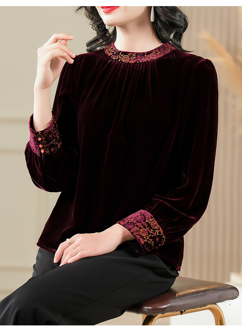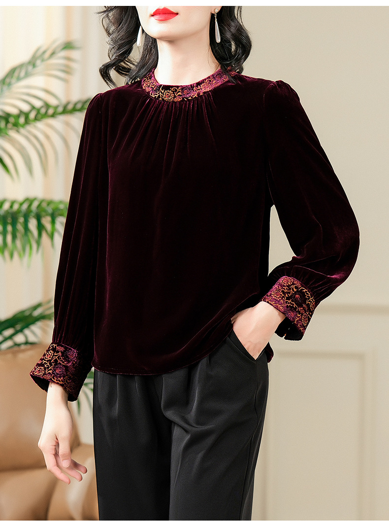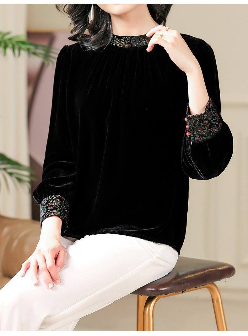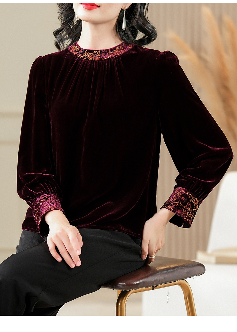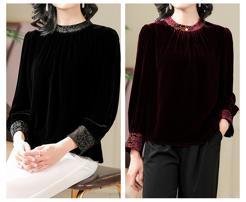 SM5058 新款高品质100真丝绒国风刺绣桑蚕丝上衣女长袖丝绒上衣 商品图0
