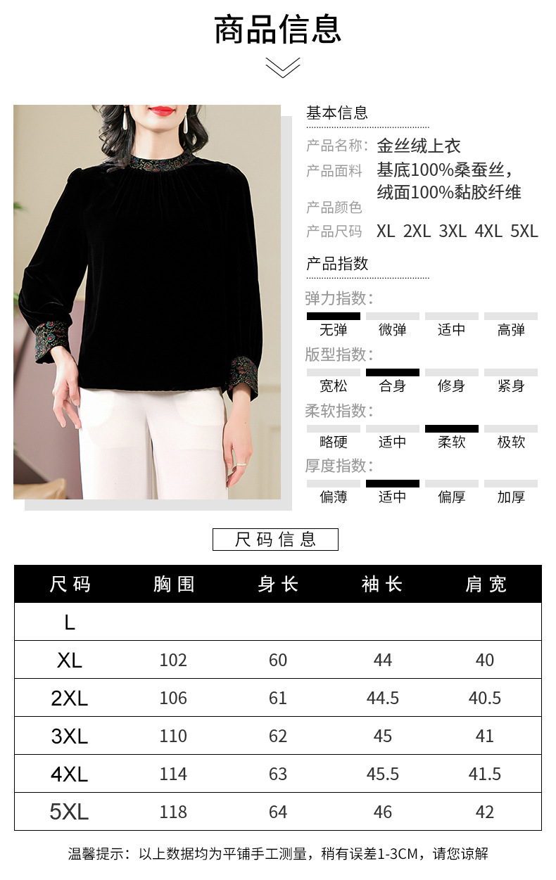 SM5058 新款高品质100真丝绒国风刺绣桑蚕丝上衣女长袖丝绒上衣 商品图2