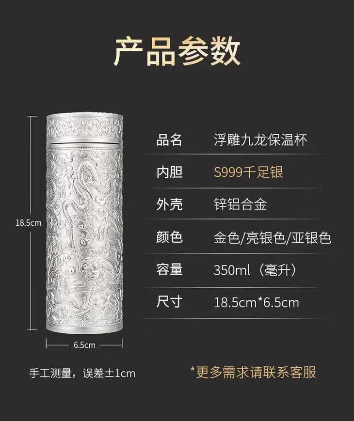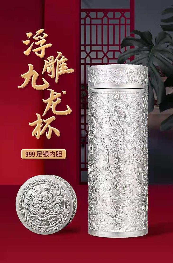 创意九龙银水杯 不锈钢内胆银杯 浮雕款保温杯工艺品礼品