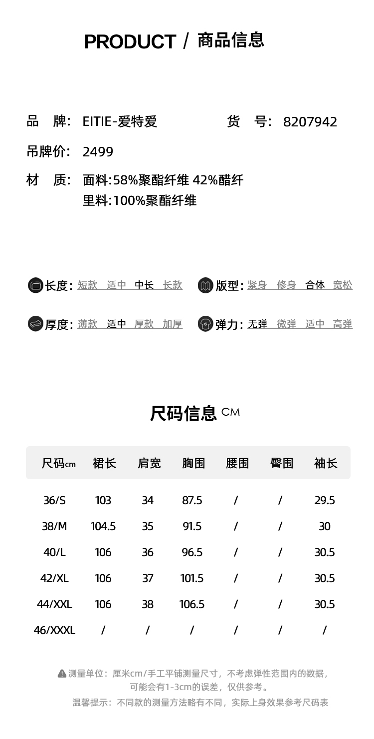 EITIE爱特爱气质通勤高腰显瘦优雅时尚连衣裙夏季新款8207942