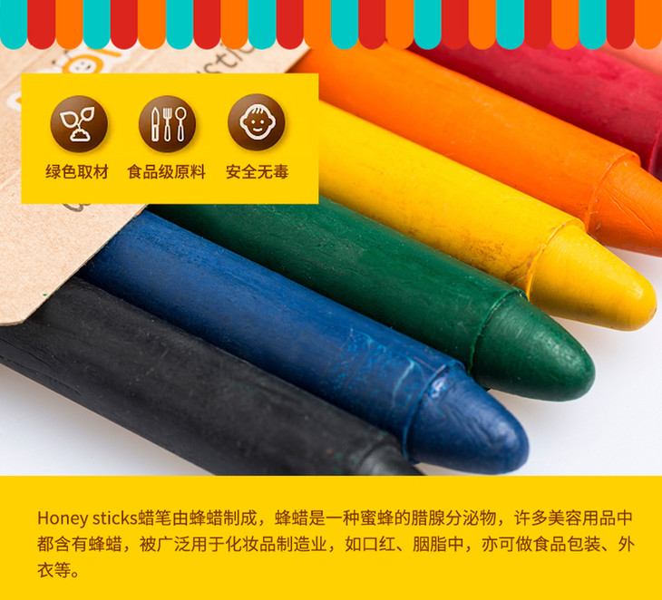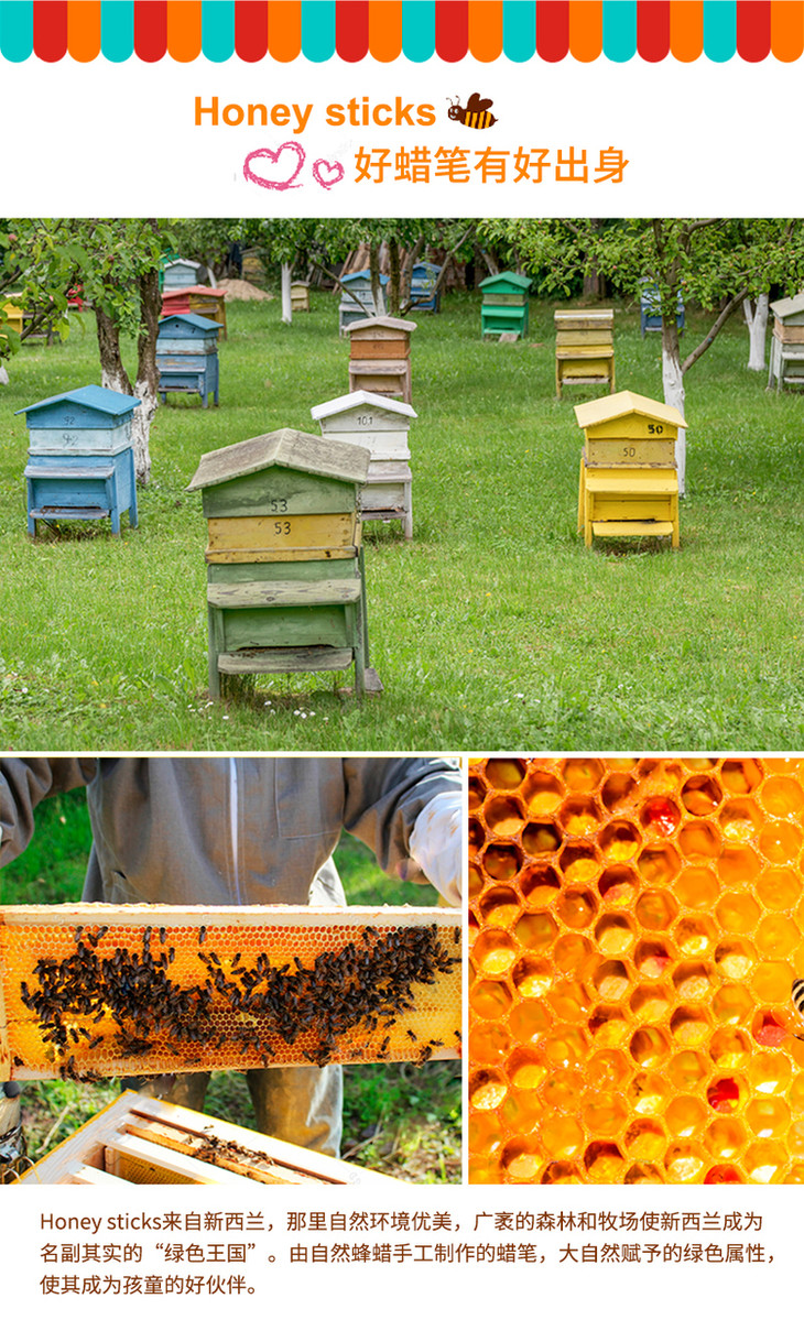 新西兰原产Honeysticks自然蜂蜡可食用无毒儿童蜡笔细款