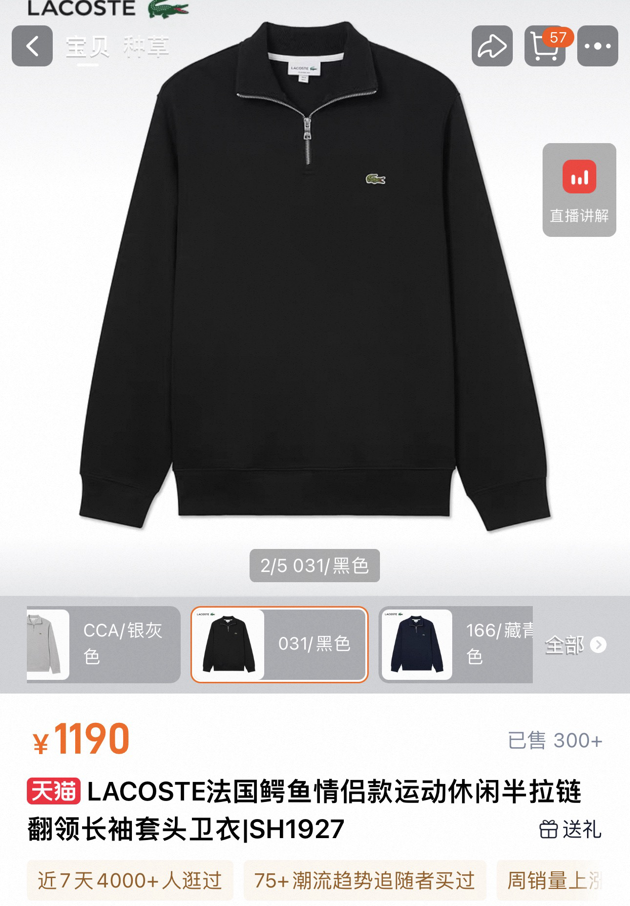💰135顺丰包邮 现货发 国内代工厂订单余裁,原单25新品LA*OS*E法国鳄鱼男女款小标半拉链卫衣~官网售价1190 同步四色 标牌齐全 自留款 可直接送人!