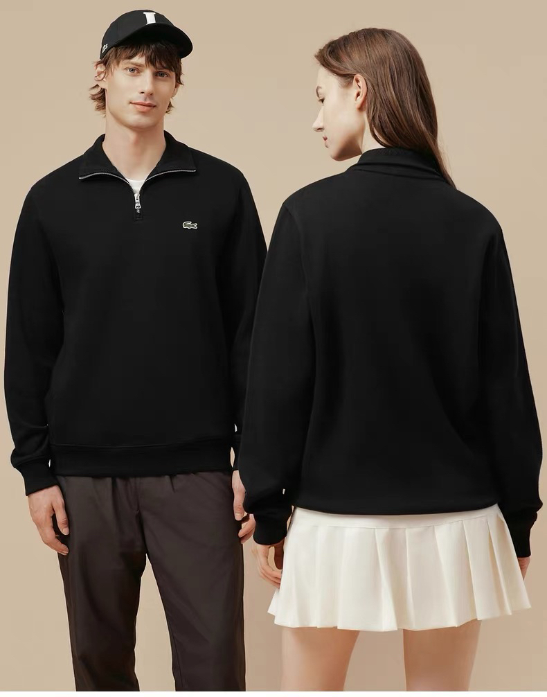 面料采用客供定织的100%棉 有一定的分量和质感,有效保暖的同时 兼具良好的吸湿排汗性 透气不闷热!半拉链的设计可立领翻领两穿,上身利落干练超有型 完全不软塌!经典立体刺绣logo做点缀 超有品牌辨识度 简约又大气,下身搭配牛仔西装裤都毫无违和感,完全不挑穿搭不挑人 男生女生都能够轻松驾驭!