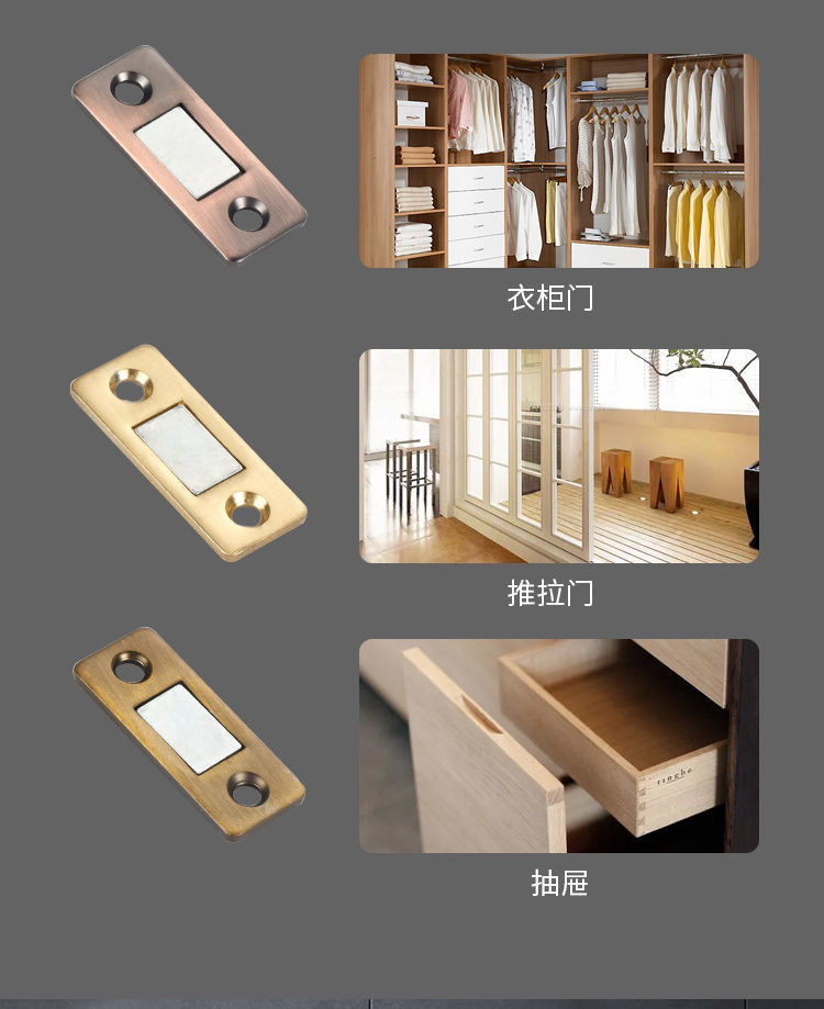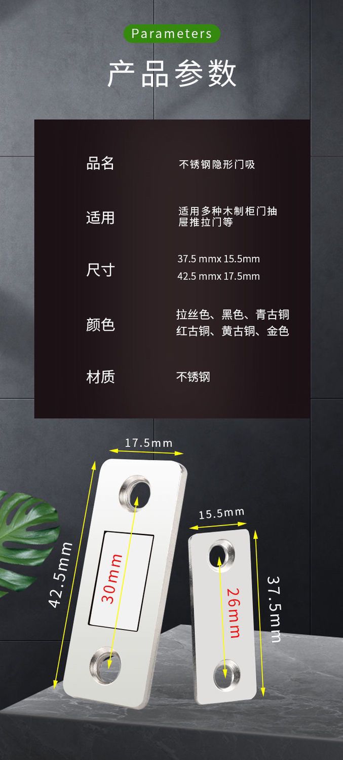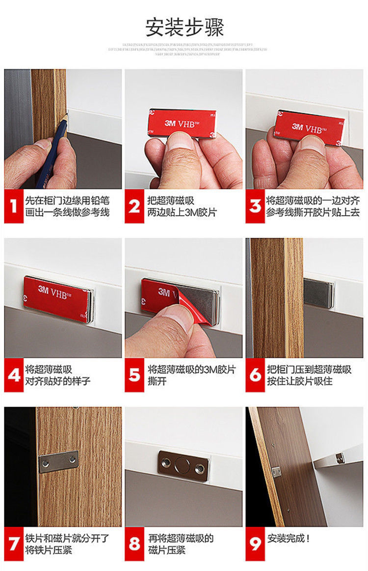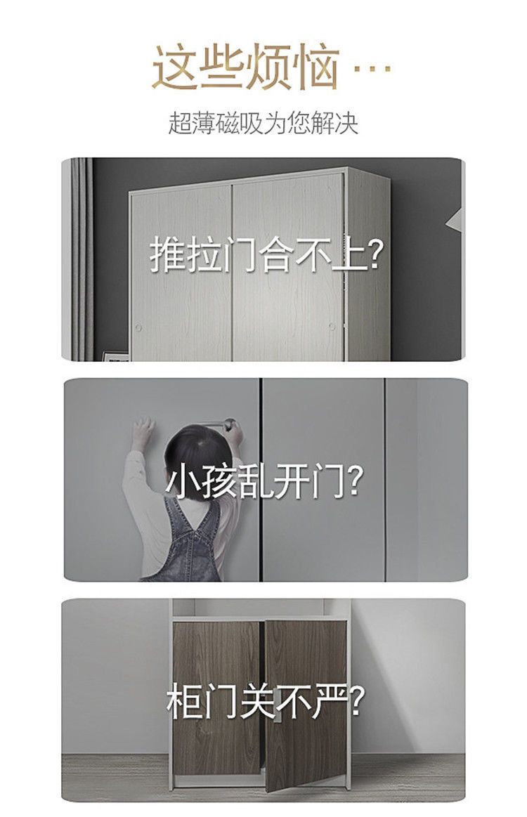 【三套】柜门隐形磁吸免打孔柜吸门吸强磁移门超薄磁铁衣柜推拉门磁碰 ERP-Z仓