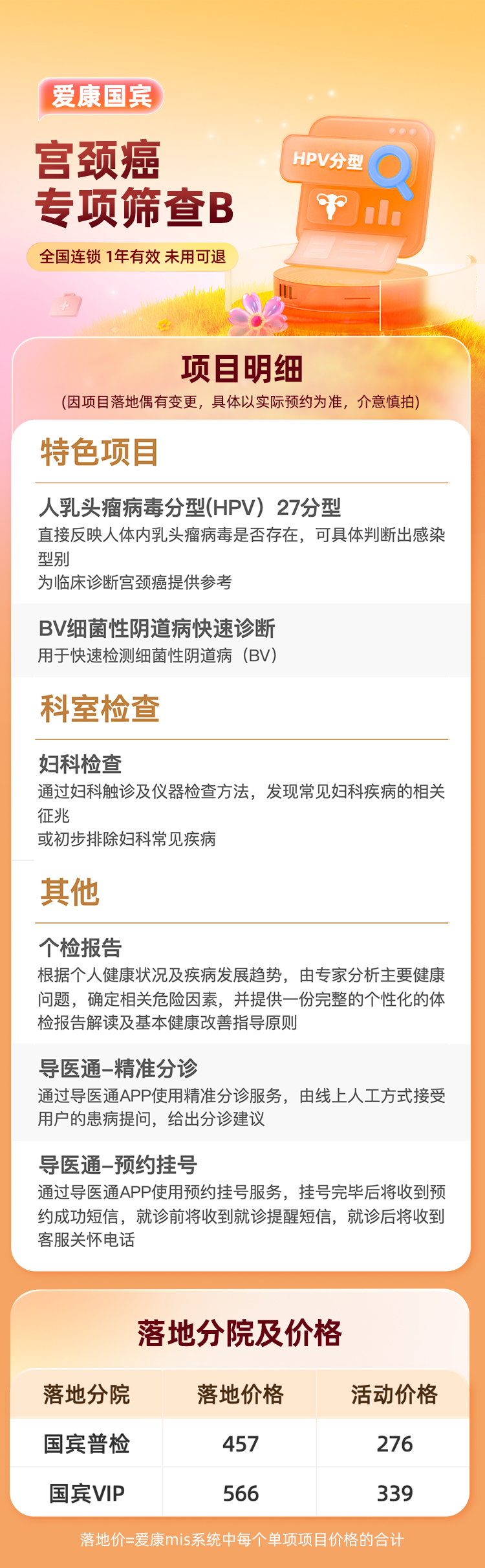 爱康国宾 宫颈癌专项筛查B